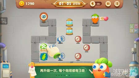 攻击小怪可以获取金币,当金币充足的时候就可以升级炮塔了。