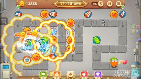 冰冻星也是不可缺少的,因为后期的时候小怪速度很快,前面放了三个冰冻星可以压制它们的速度。