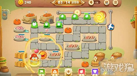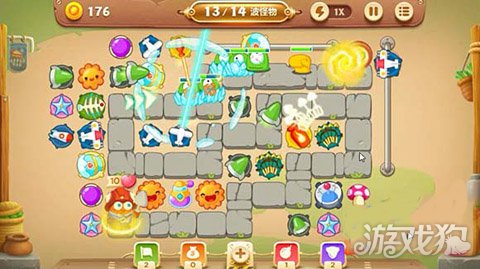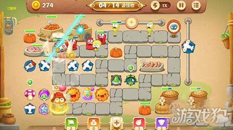 那么可以看见本关中的隐藏炮塔是有很多的,毒气桶,攻击导弹,蘑菇,魔法球,但是我们也不要急着升级,可以优先选择对战局最有帮助的炮塔。