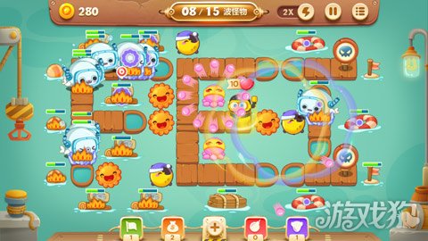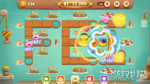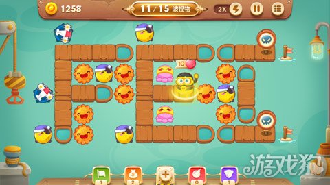 前期的小怪速度比较快,这点需要注意,一旦发现自己的金币足够放炮塔的时候就点击暂停放了炮塔之后再开始。