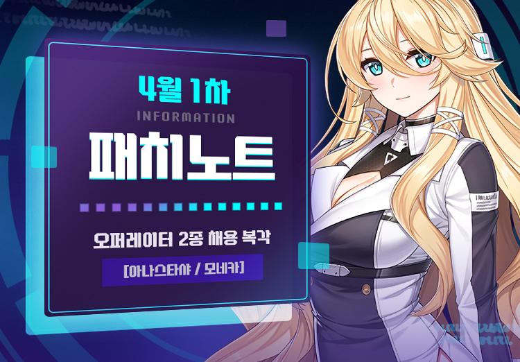 4月5日更新公告(史上最短)好家伙,被韩国网友评为史上最短更新公告。难道韩国也放假了?咳咳,放假期间,就不跟大家多磨叽了,本周就一个更新。是官方帖真的就这么点内容。1. 雇佣变更事项: 领航员莫妮卡, 阿纳斯塔夏概率UP 4/5(二) 上午9点~4/26(二) 凌晨4点