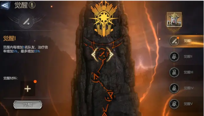 在觉醒界面可消耗材料(通灵体、同名英雄)提升英雄觉醒阶段,觉醒可获得额外的能力及属性,是提升英雄练度的主要渠道。