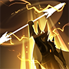 对远处的1个敌人扔出圣枪,命中时对目标附近最多8个敌人造成560%的伤害,圣枪在命中位置停留最多12秒后飞回手中。停留期间英雄停止普攻,圣枪每2秒发出脉冲,对周围最多8个敌人造成300%的伤害并附加抗降低英雄阻挡的敌人到达上限时圣枪提前飞回。