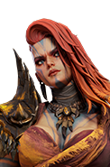 阿尔代垭能够极其精准地使用铁链与炽火,像一股狂怒的烈焰风暴般杀入战场,因而被抚养其长大的兽人部落称为“地狱之刃”。尽管她在战场上的英姿有如一位天生的战士,但阿尔代垭的出身却远不够高贵。