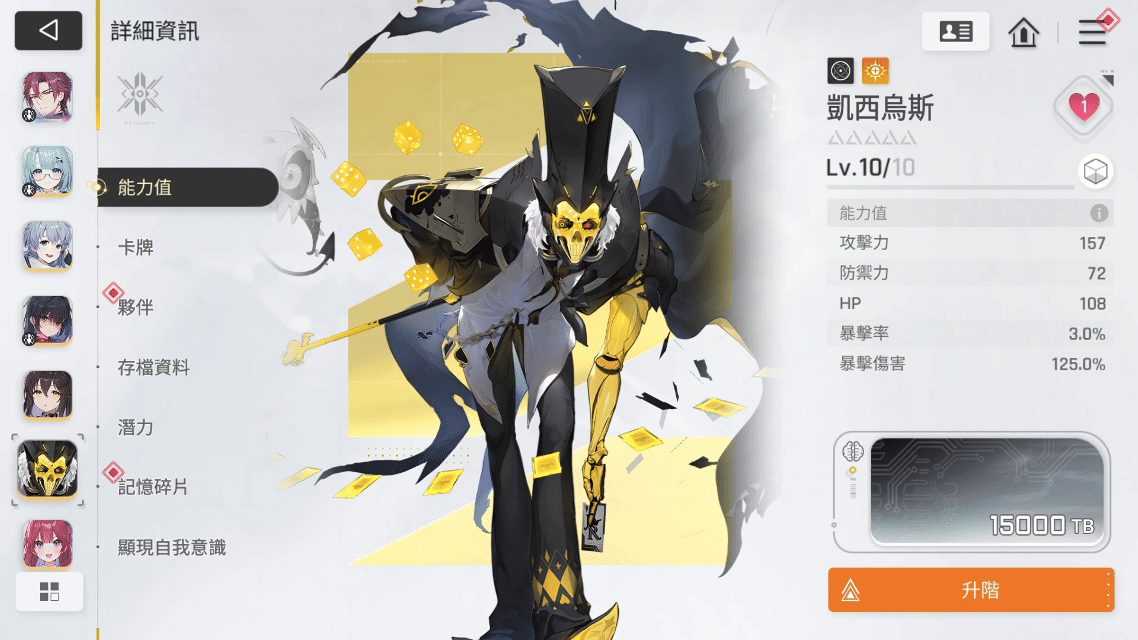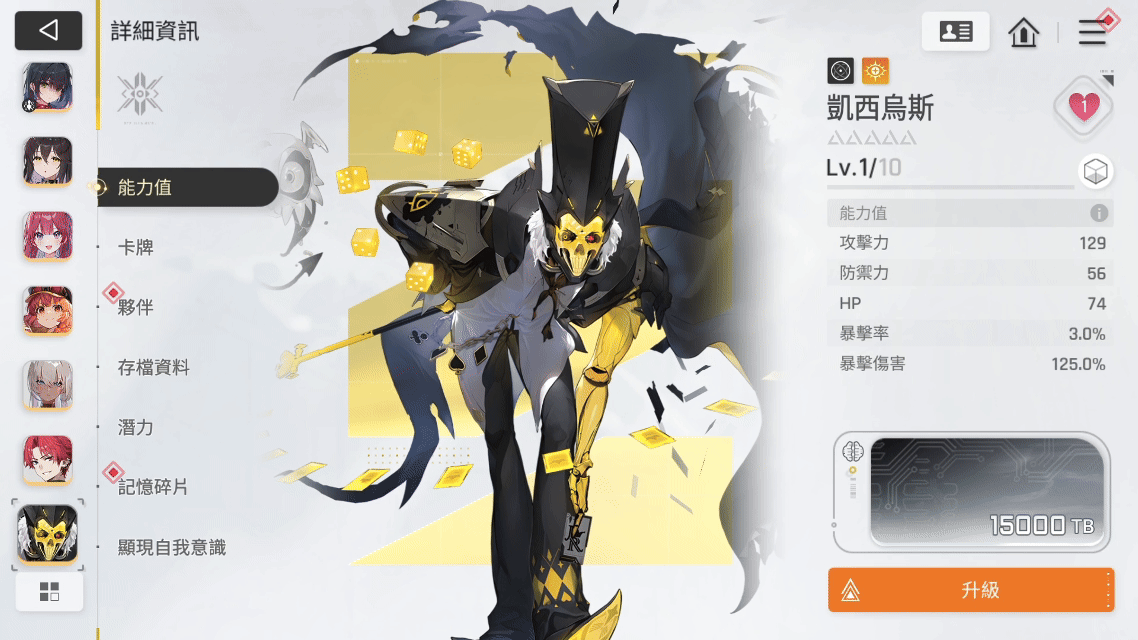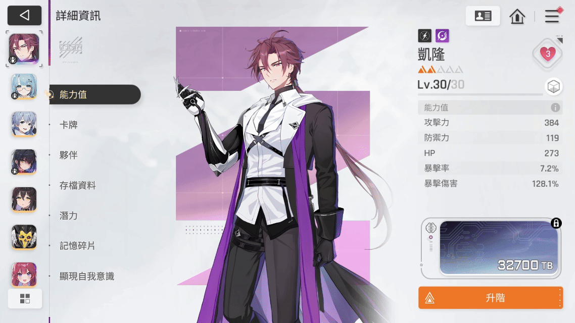 所谓战力养成就是指直接提升角色白板数值的部分啦!所以本篇将不包含[卡厄思]存档数据~