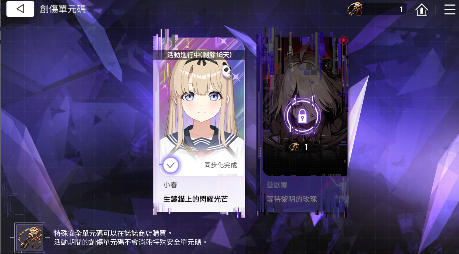 活动up角色的创伤单元码将不消化钥匙 而其余普池角色应该会逐步更新 需要钥匙解锁