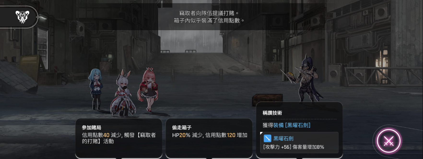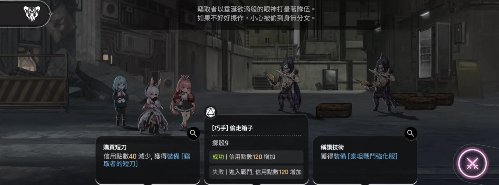 触发事件,宝箱可以全开,分别有100信用点、2个随机稀有~传说装备
