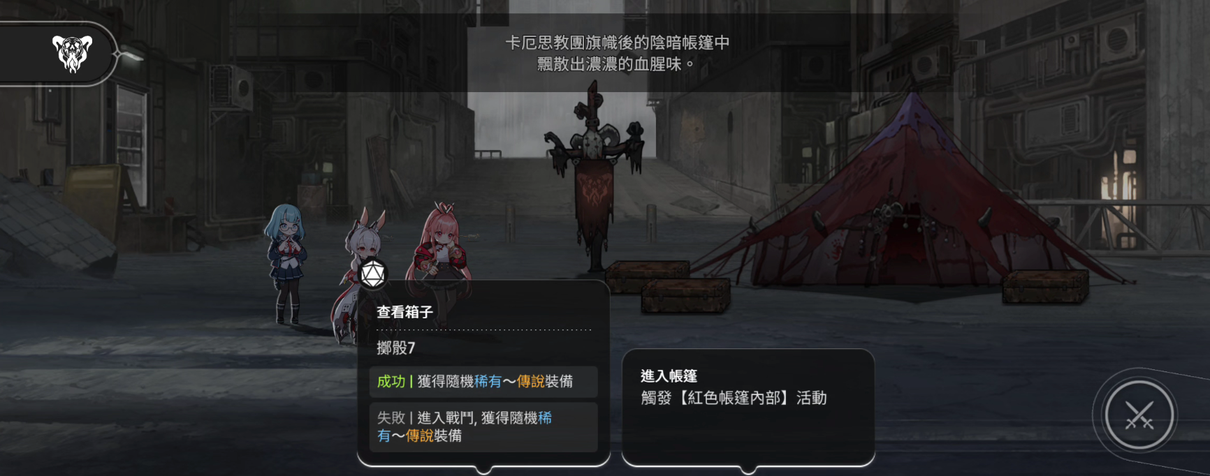 左边箱子 概率释放获得 随机传说装备 / 概率获得 随机稀有装备