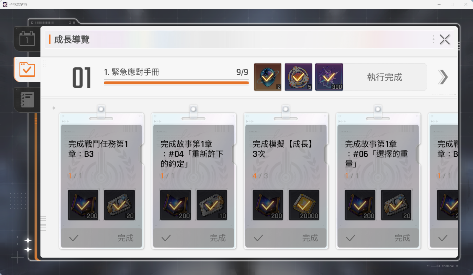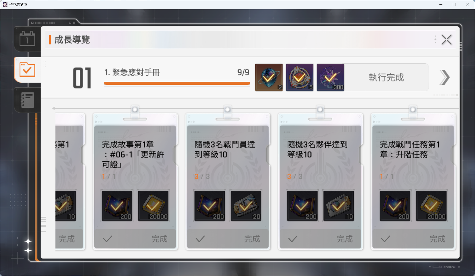 另一些贯彻全手册的任务:选三个你想练的角色和对应的伙伴,一直升级到40就完事了,另外就是外出,