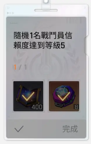 信赖度,这个一定得记得,开基地的时候选好你想升的干员,我建议选个4星的米卡,或者4星的其他辅助也行,个人感觉5星有点难刷,因为基地里有个外出机制,外出是随机刷的,只有刷了外出提升好感才快。