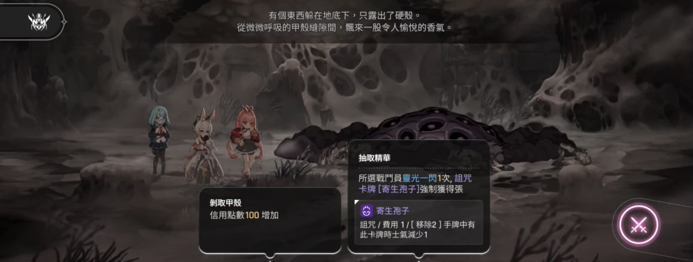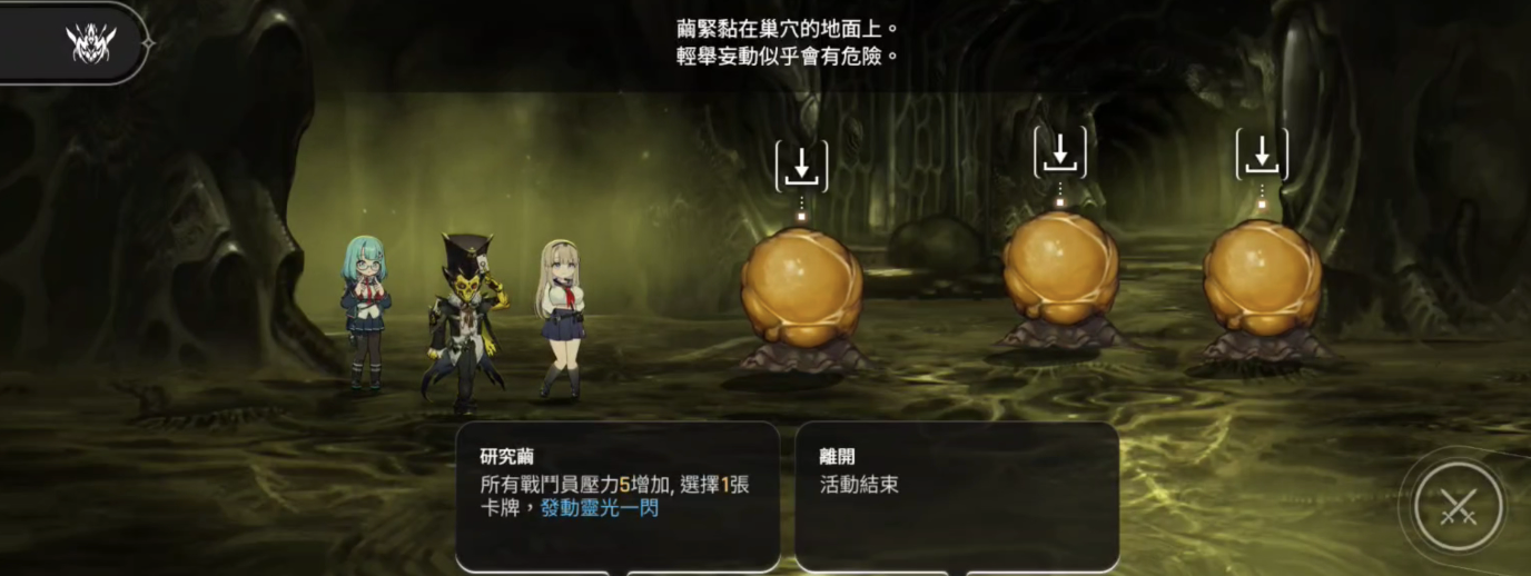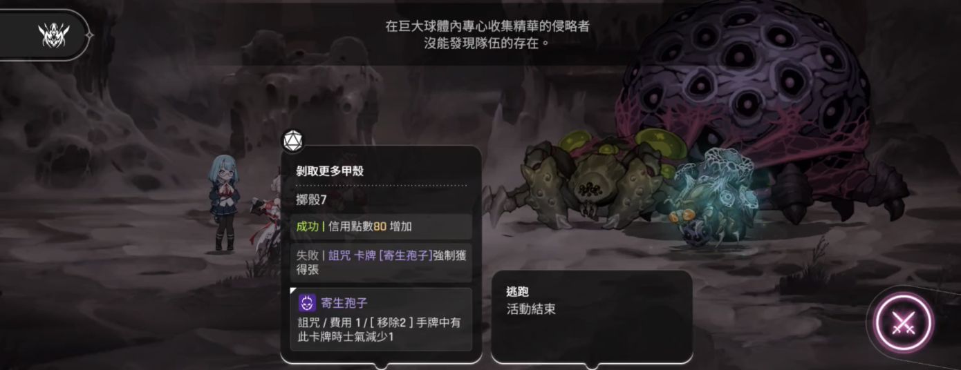 注意刚进来时,茧上有......,怪在里面说话。打了怪,获得40信用点且立即结束事件。