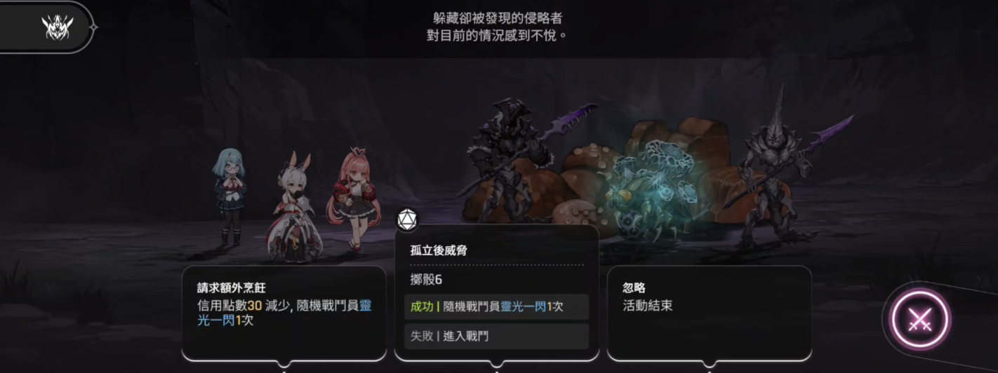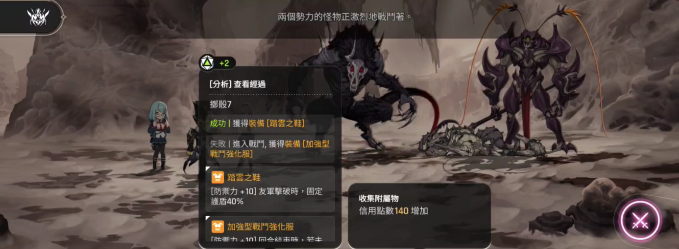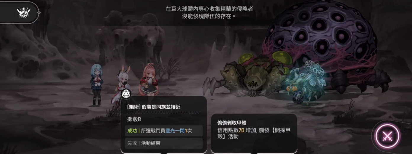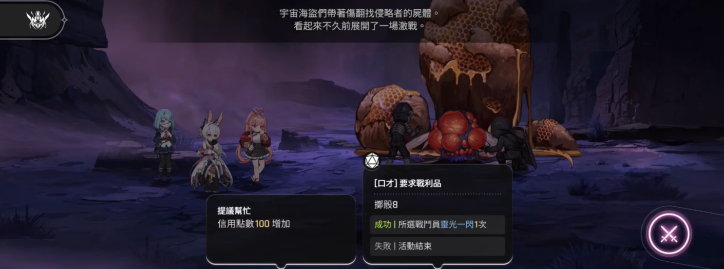 再攻击,获得40信用点,选择战斗员灵光一闪1次