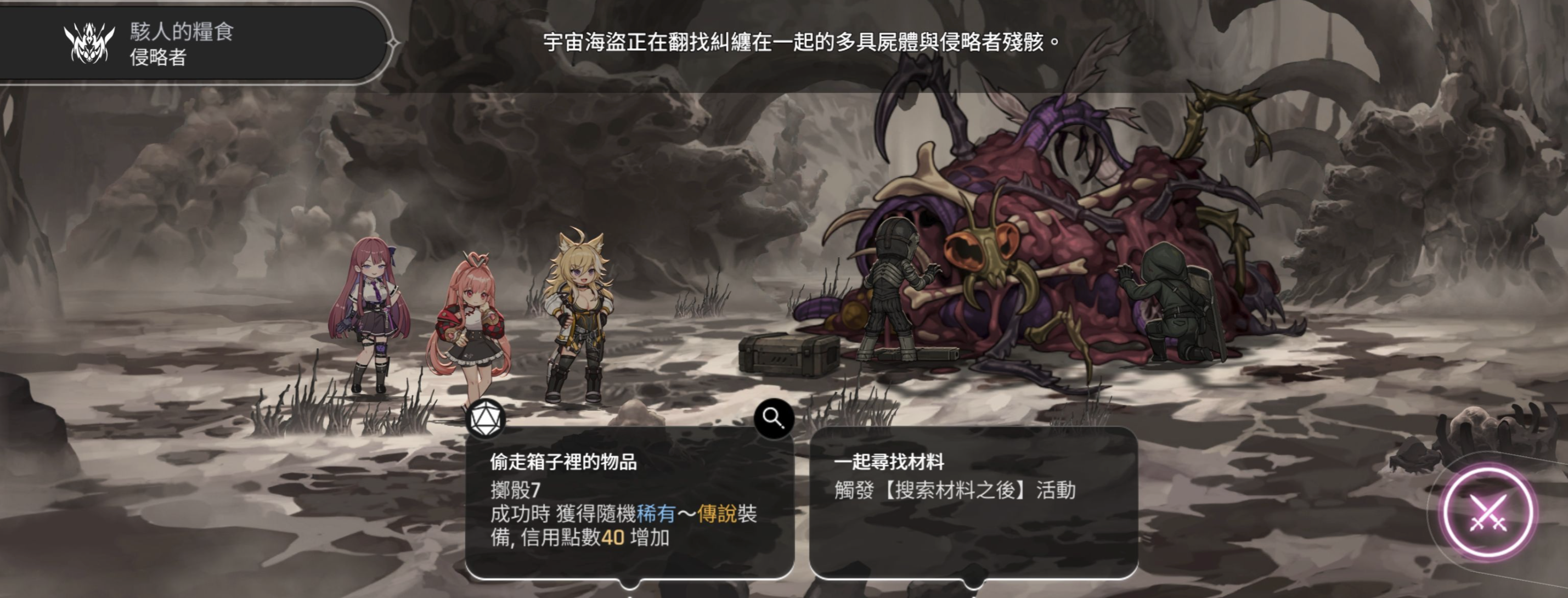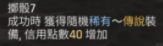 触发事件,宝箱可以全开,分别有100信用点、2个随机稀有~传说装备