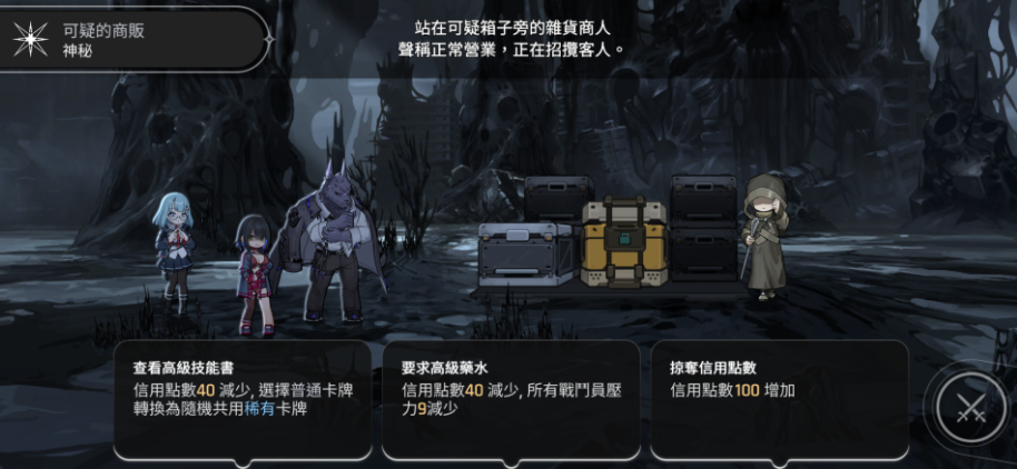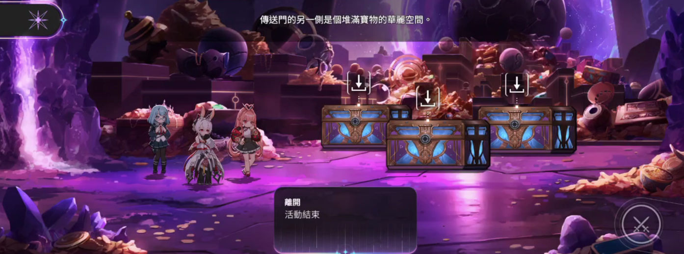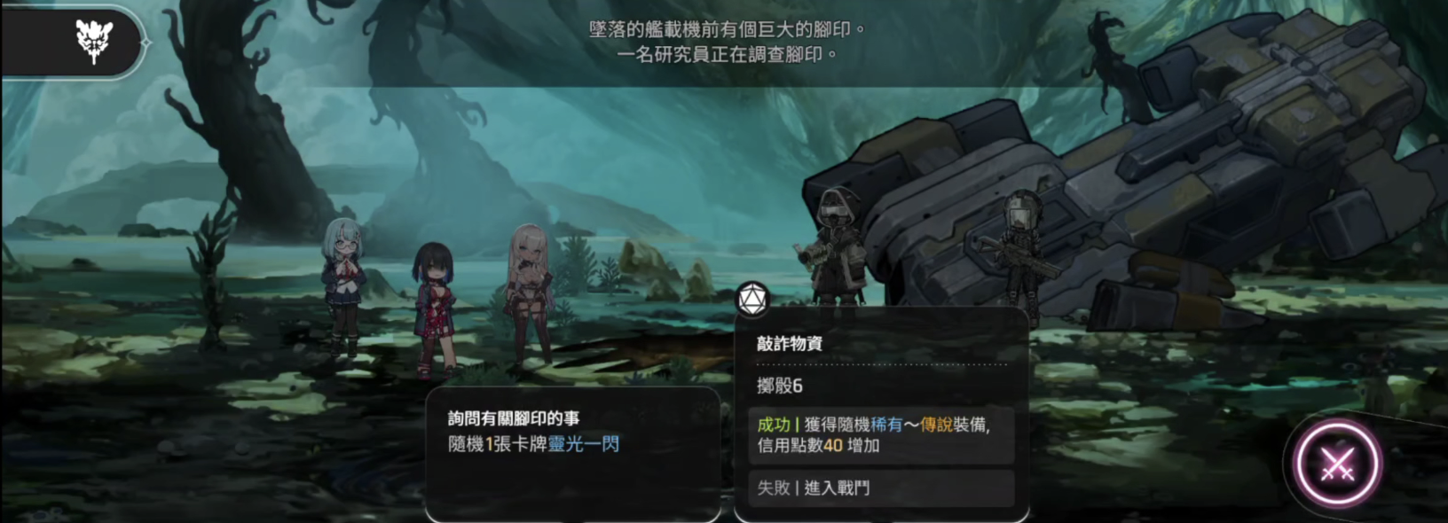触发事件,宝箱可以全开,分别有100信用点、2个随机稀有~传说装备