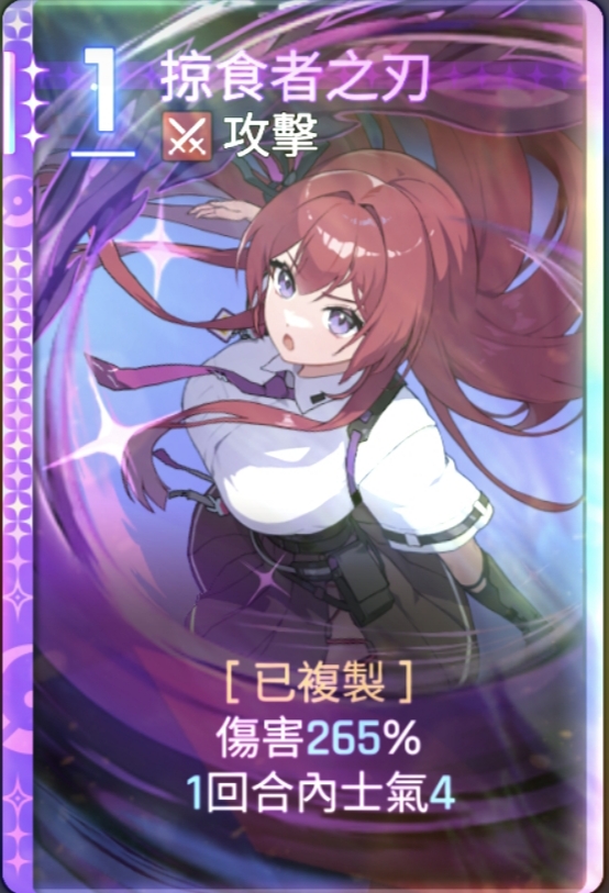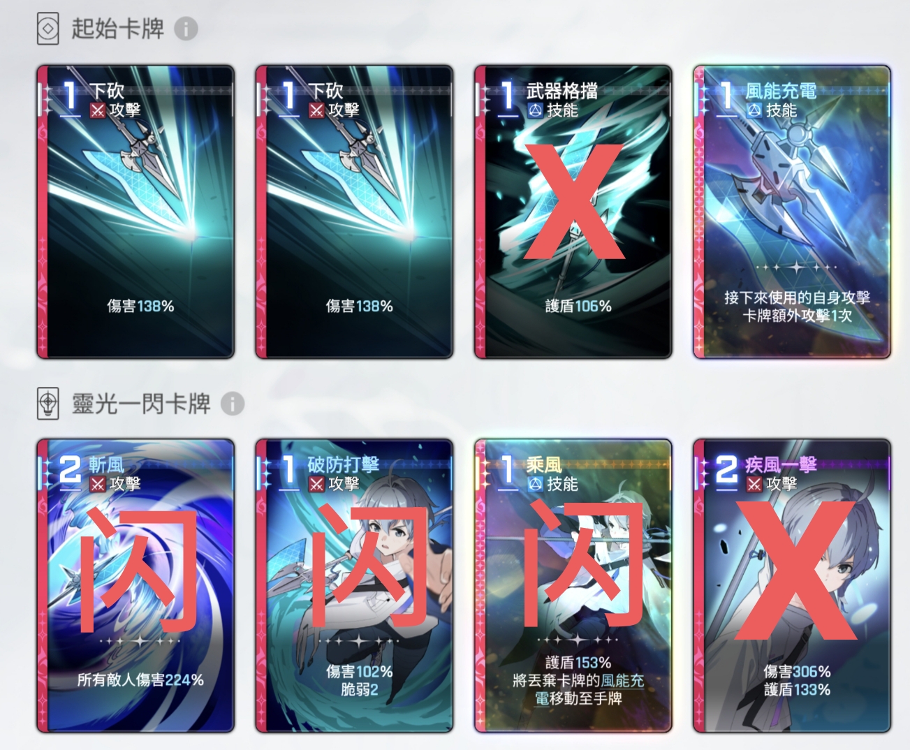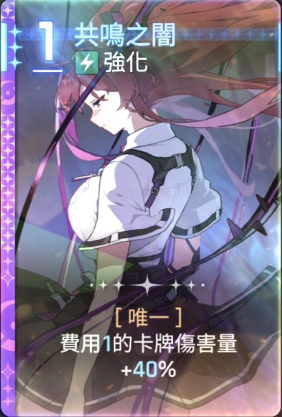 是游戏内独一无二的存在,可以配合某些特殊的角色达成高额收益。但是如果要这样使用,则需要在卡厄思里面疯狂删卡,最好只留一张0费用神闪和。但这样养成过于极限,所以可以退而求次,选择当作正常增伤拐使用。因为身为决斗家,无法使用