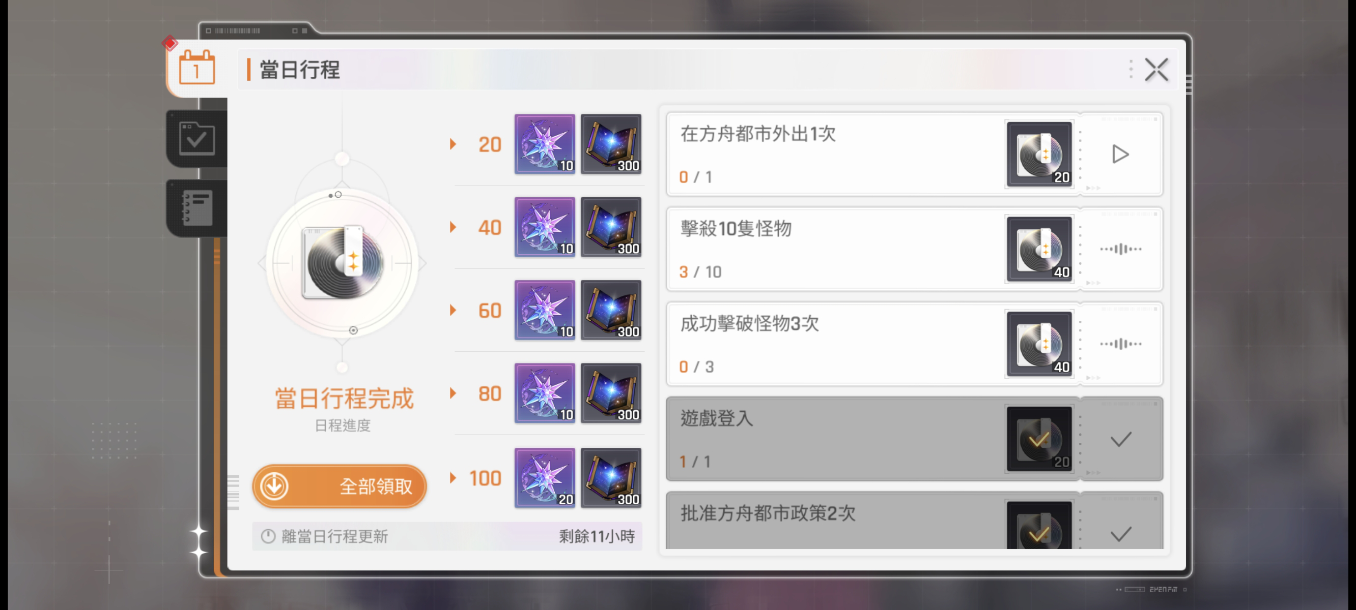 日常任务每天凌晨2点刷新,合计做到100点点数就可以拿完奖励,一般登录后打几把模拟把体力消耗够120点就能做完,如此每天会额外提供1500点经验值。