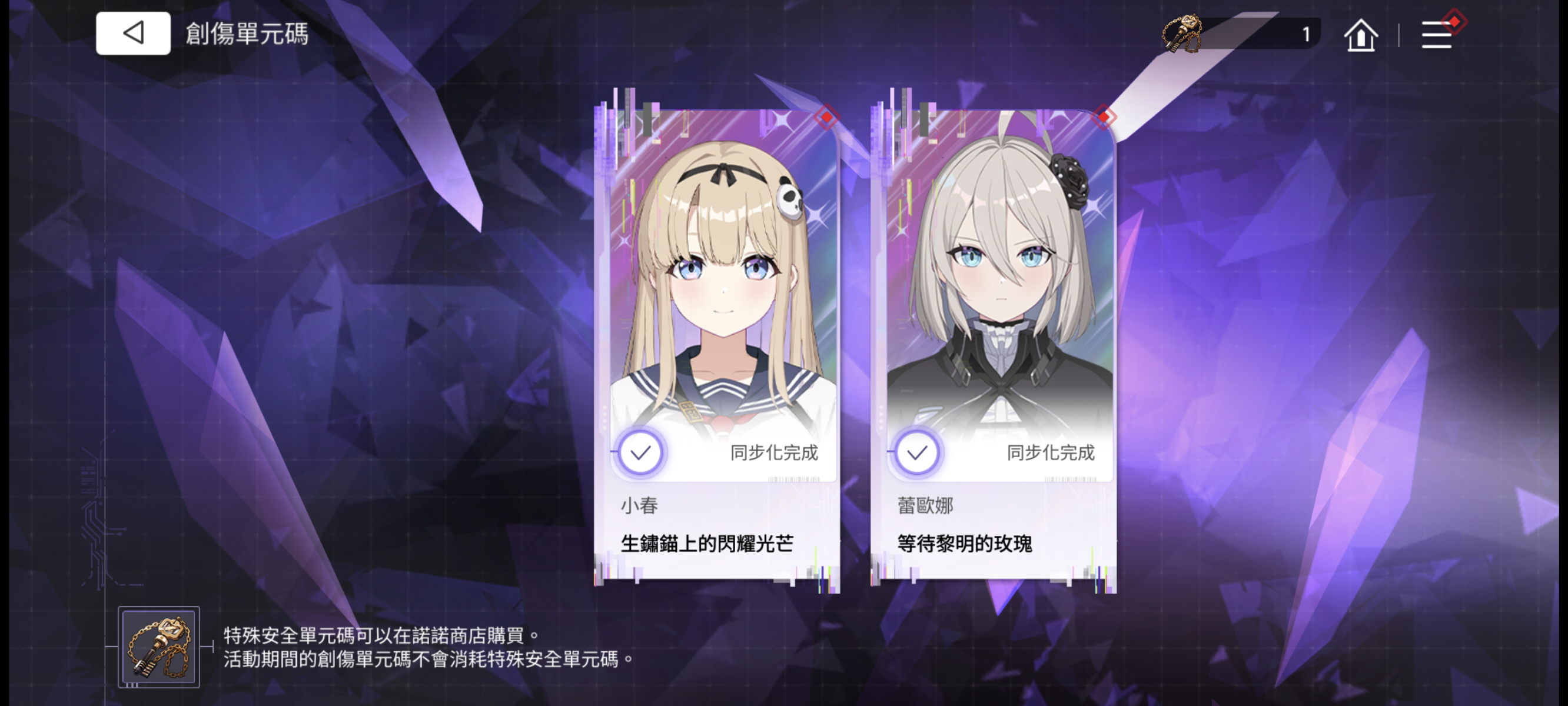 方舟都市内进入治疗中心可以看到创伤单元码模式,该模式的剧情是多选项的分支剧情,同样包含了故事和战斗任务,玩家需要在完成每个分支剧情后多次回看故事选择不同的选项才能解锁全部剧情拿完同步化奖励。解锁该模式需要消耗特殊安全单元码,可以在诺诺商店购买,每周限购1个。女主的剧情会提供4000点经验,小春的能提供2800点经验。