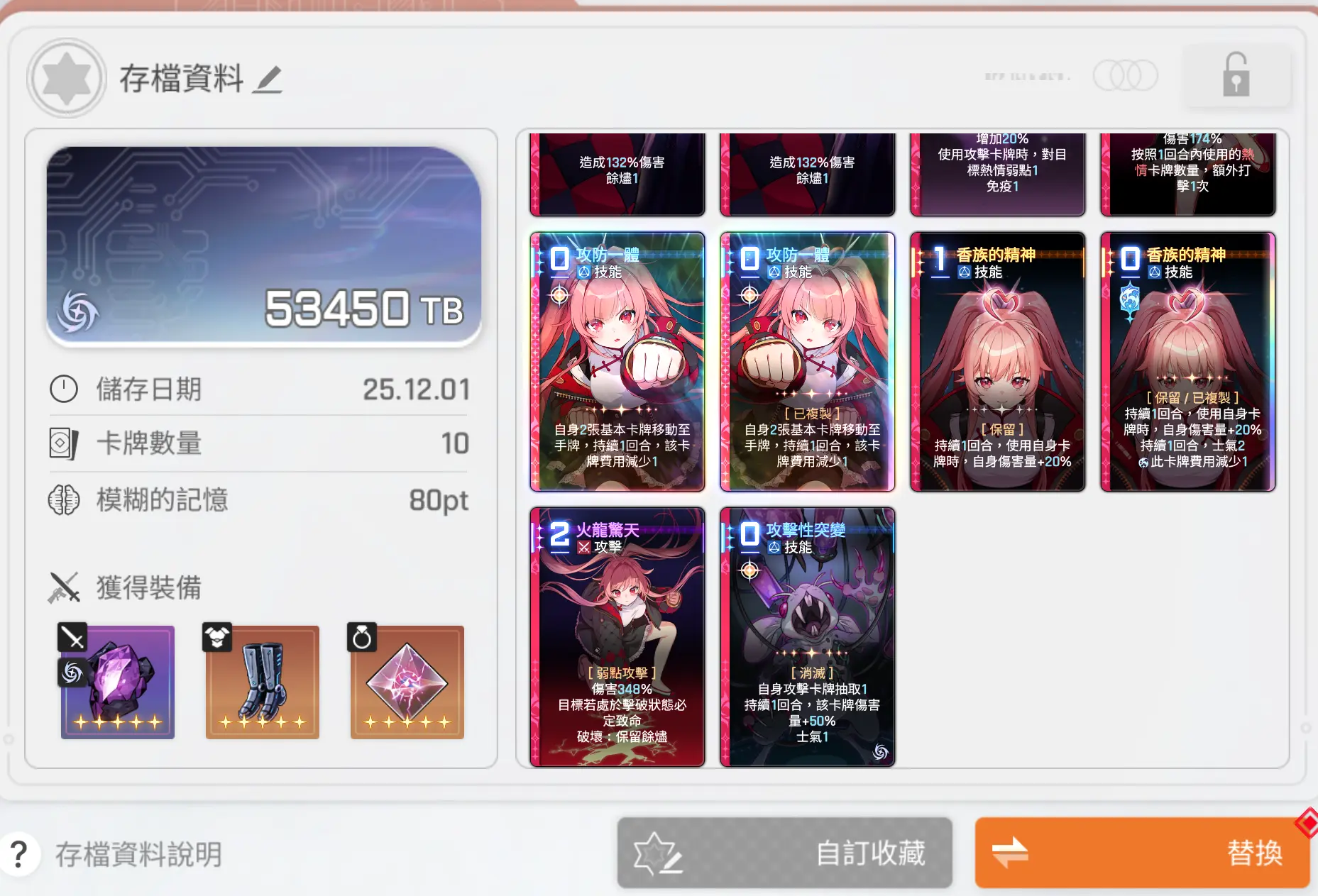 武器选择抽取相关的装备即可,防具和首饰优选【自由之翼】和【优秀个体证明】,没有也没关系,低配情况具体可以参考文末我自己的卡组。