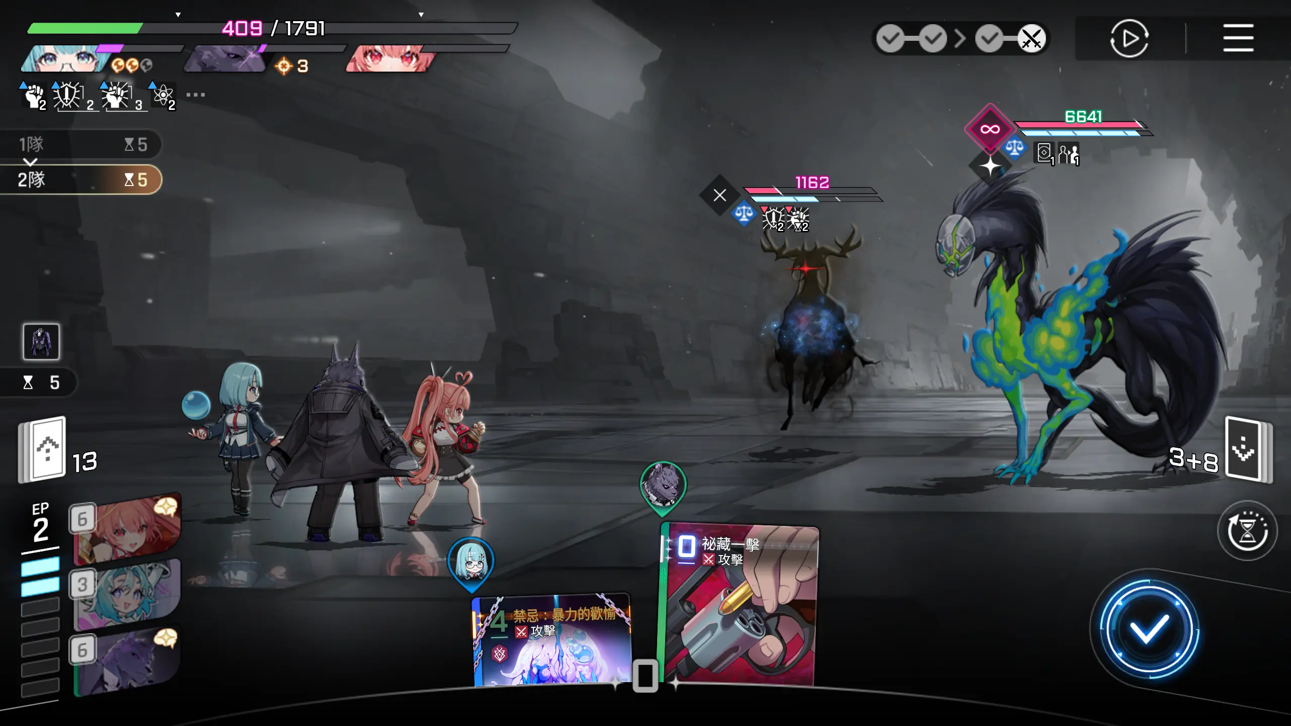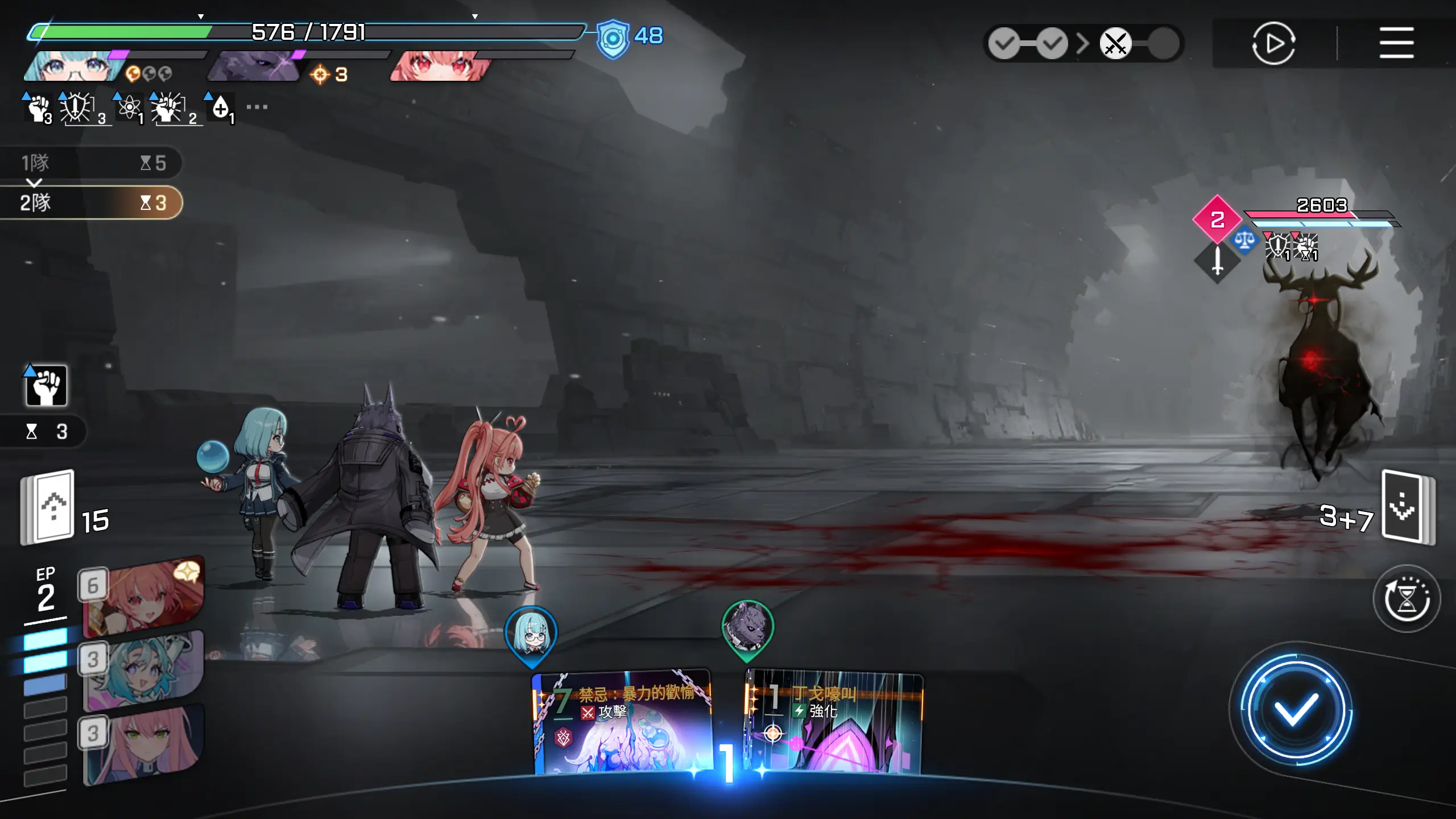 【禁忌:暴力的欢愉】直接打残,随便收尾,战斗结束,用时5个回合。
