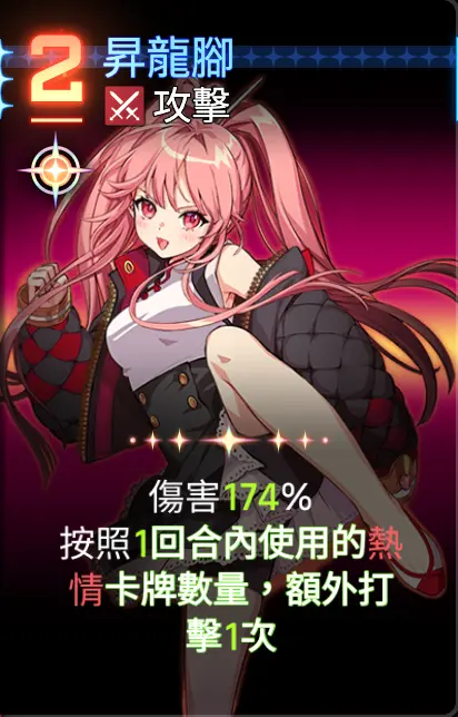 最后配合已经刷好的【禁忌:暴力的欢愉】,以及攻防一体+2次一击+升龙脚高额伤害,水之根源的ap回复消除污染卡牌(不消除也没啥大问题,只要手牌不满就行),然后一脚踹死即可。