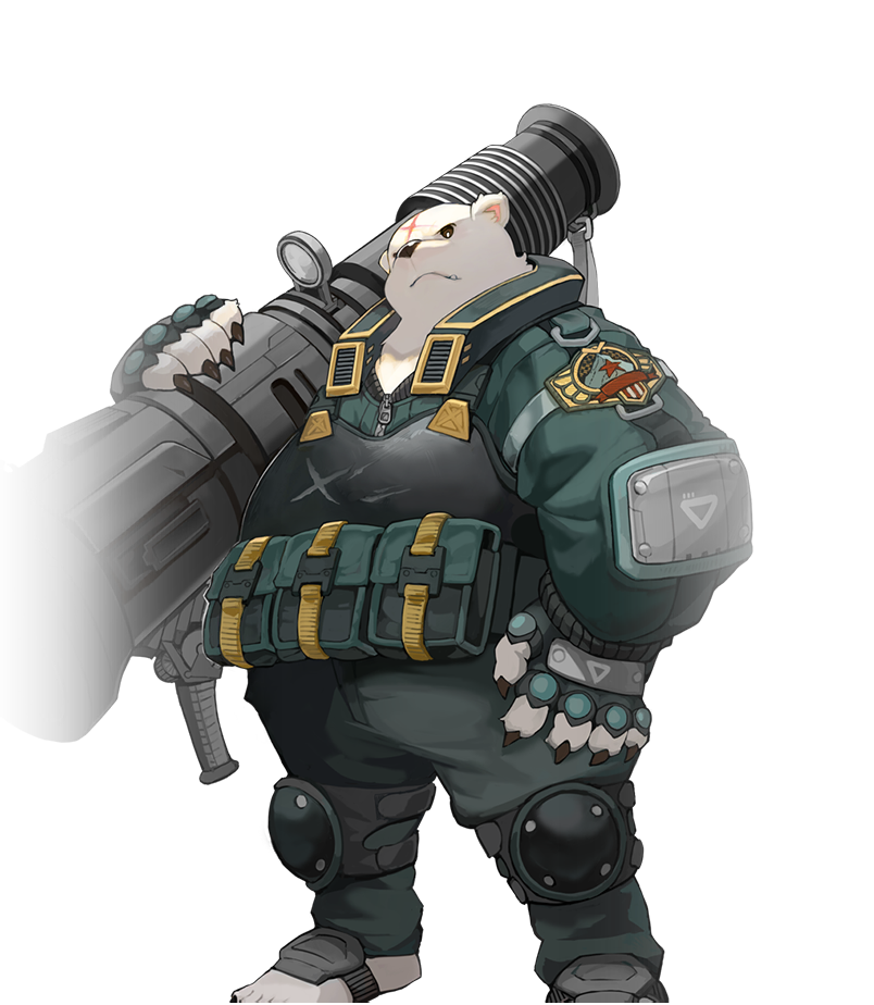 阿祖尔商团的护卫:他手持巨大的火箭筒,负责在后排支持火力。他是商队方舟武器商的儿子,原本可以继承家业,却因为觉得自己不适合当商人于是自愿加入了商队的护卫部队。