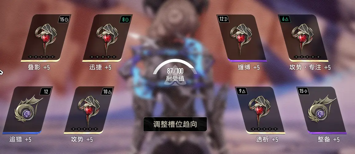 同律武器的魔之楔来源主要是迷津,刷起来比较慢,建议慢慢搞。多重射击意外的是一个增伤的独立乘区,可以直接作用于大招的出伤,最为重要。鉴于基础暴击率只有区区12%,就不建议堆暴击了。(一个+5的专注才能给6%暴击率。收益过低)
