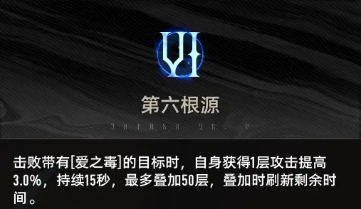 核心溯源,增加召唤物伤害更大的意义是可以吃满水属性通行证魔灵的支援技能,主要核心点在于增加[爱之毒]层数上限,DOT伤害和终结技伤害都有不小的提升。