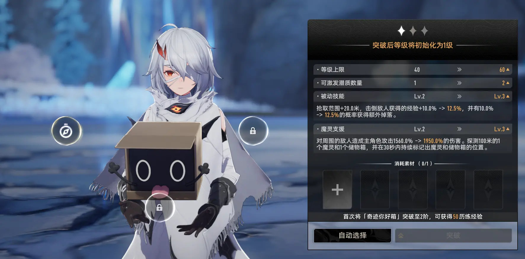 操作:给你好箱升完级,突破完毕。这个时候你好箱就有了第一个潜质位置。