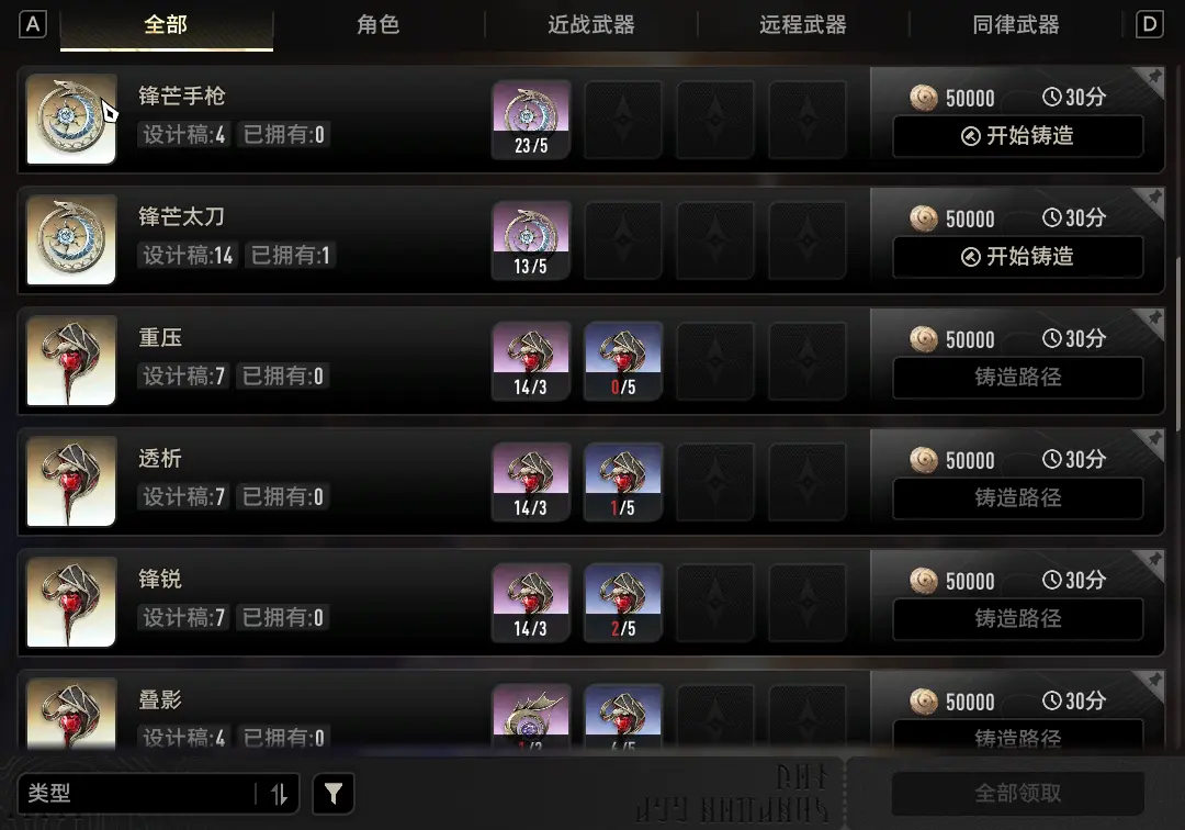 基于以上理解,优先培养的武器整体有三类: