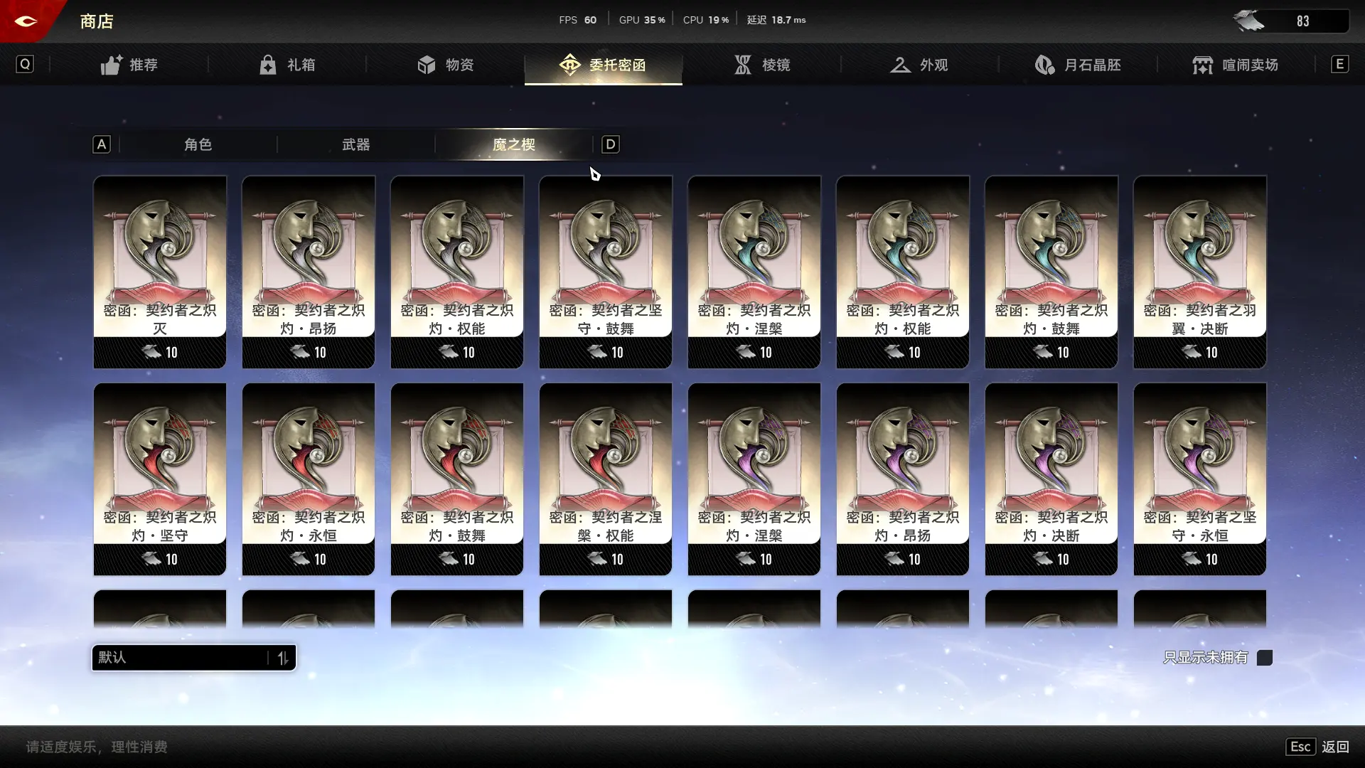 ②如果特别喜欢赛琪以外的周本角色,建议只获取一命,剩下的资源优先用于刷取其他武器,每个武器保证拥有10个左右密函即可大概率刷出。