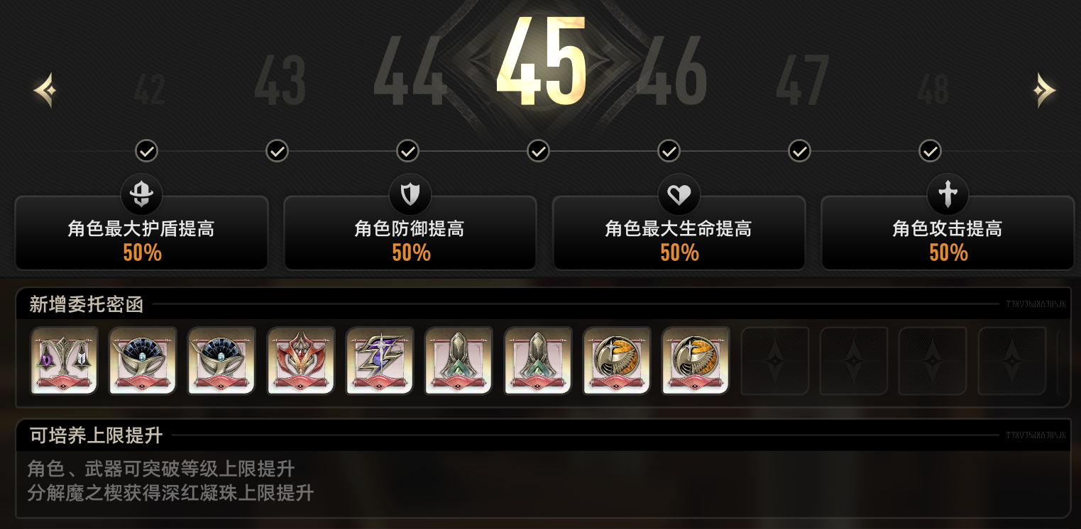 委托密函获取速度慢,要花大量时间,前期肝一个满命角色要拖的时间够刷几千经验的时间了,密函获取慢后面要用就有的肝了。