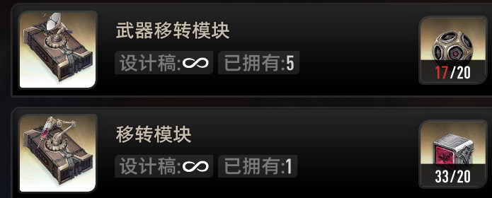 这里提个醒 移转(武器)模块不要谁便乱用噢,获得方式只有角色突破40级给一个移转模块,武器突破40级给一个武器移转模块