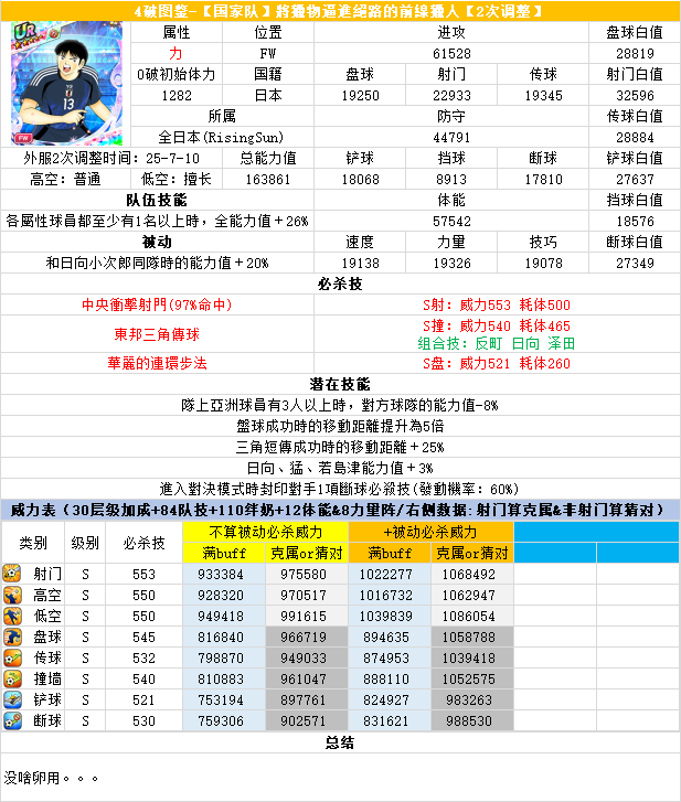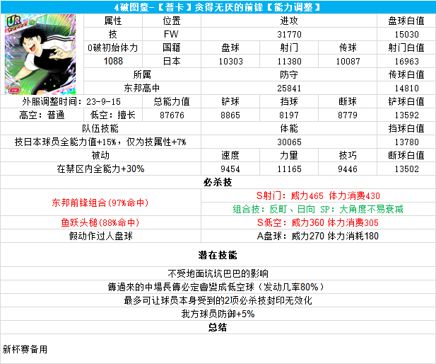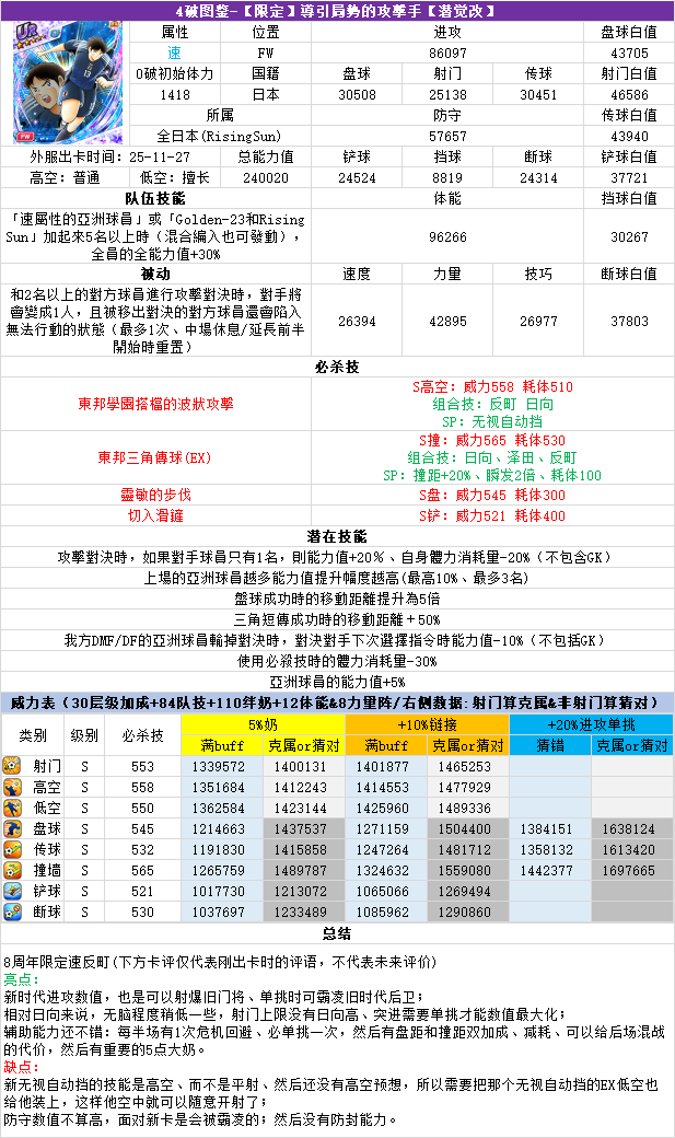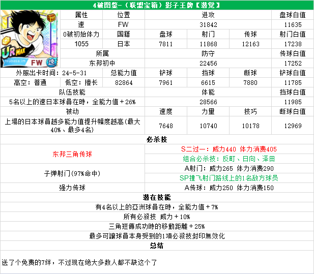 反町一树反町所有技能卡:反町技能库(点击链接可跳转im数据网,查看射门命中率等信息)https://tsubasa.im/global/zh/character/skills/?id=122反町传授P点技能库(点击链接可跳转im数据网,查看射门命中率等信息)https://tsubasa.im/global/zh/character/inherit_cost/?id=122