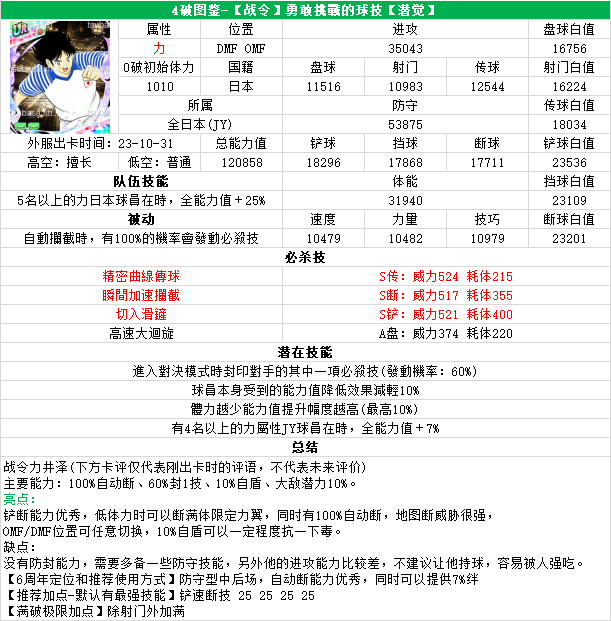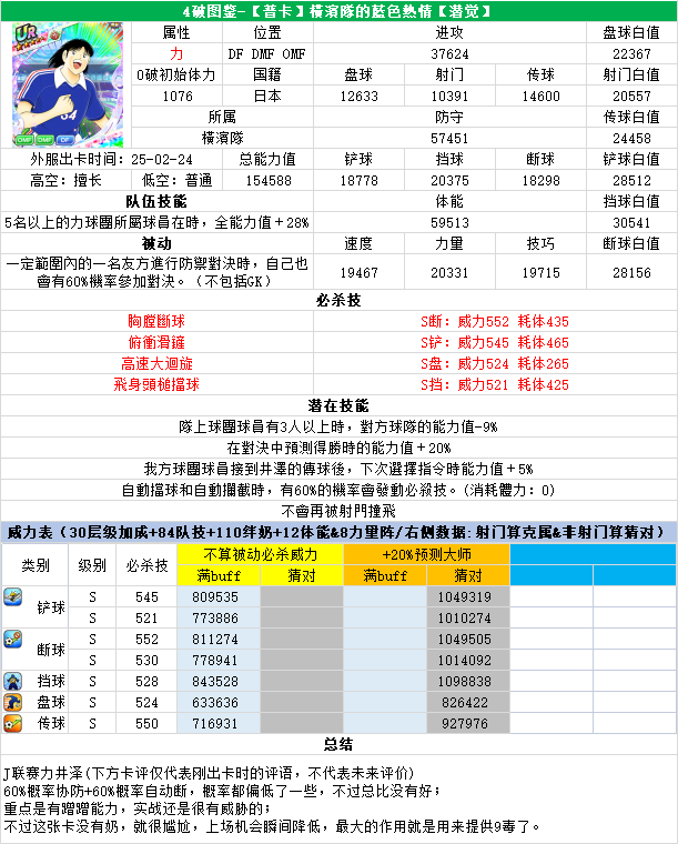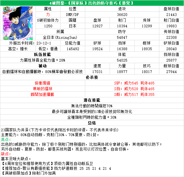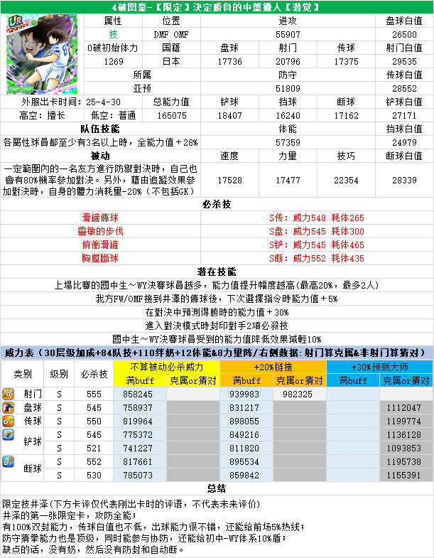 井泽守井泽所有技能卡:井泽技能库(点击链接可跳转im数据网,查看射门命中率等信息)https://tsubasa.im/global/zh/character/skills/?id=130井泽传授P点技能库(点击链接可跳转im数据网,查看射门命中率等信息)https://tsubasa.im/global/zh/character/inherit_cost/?id=130