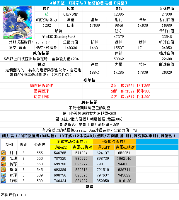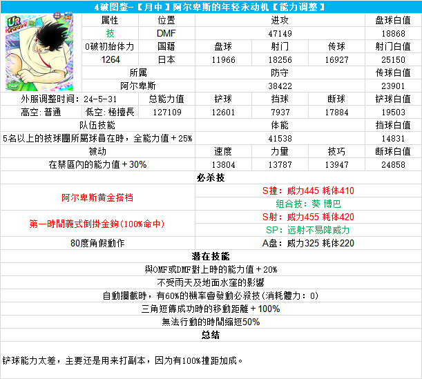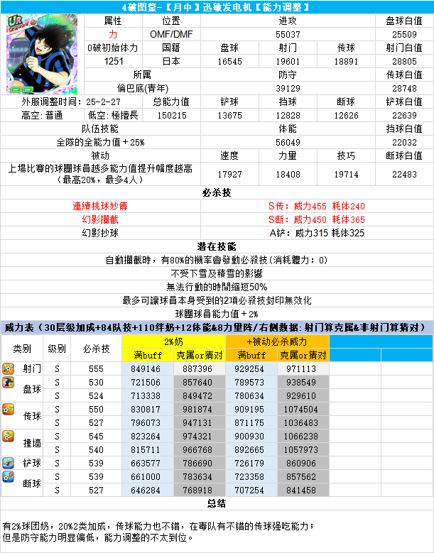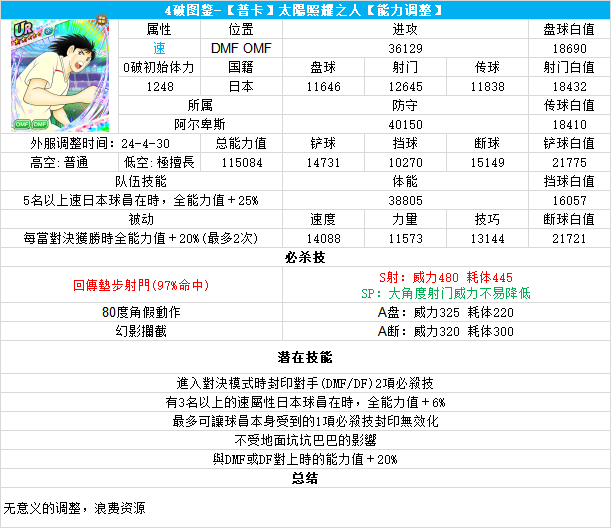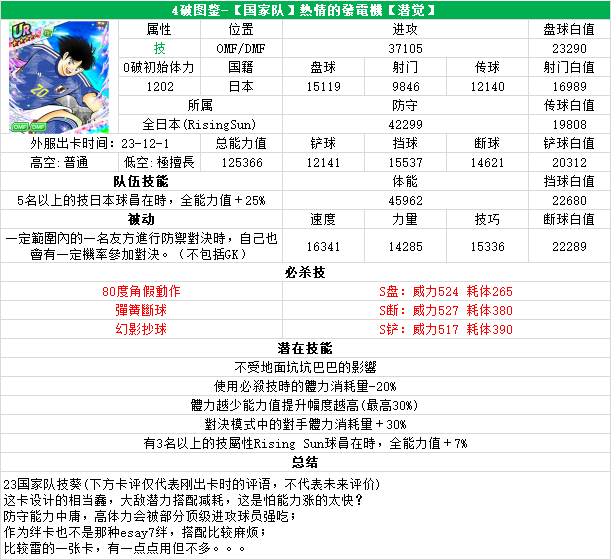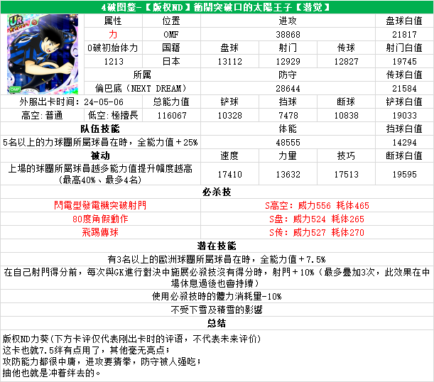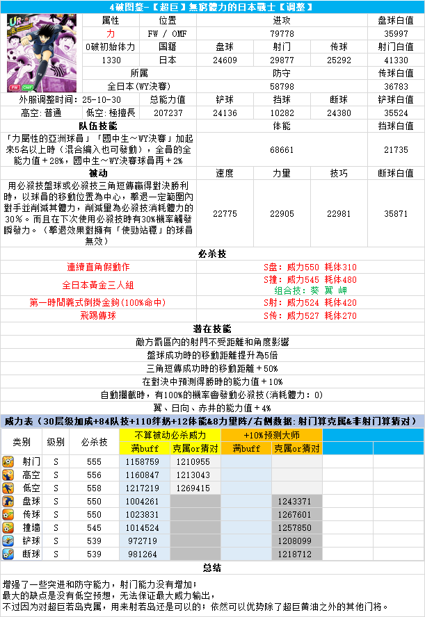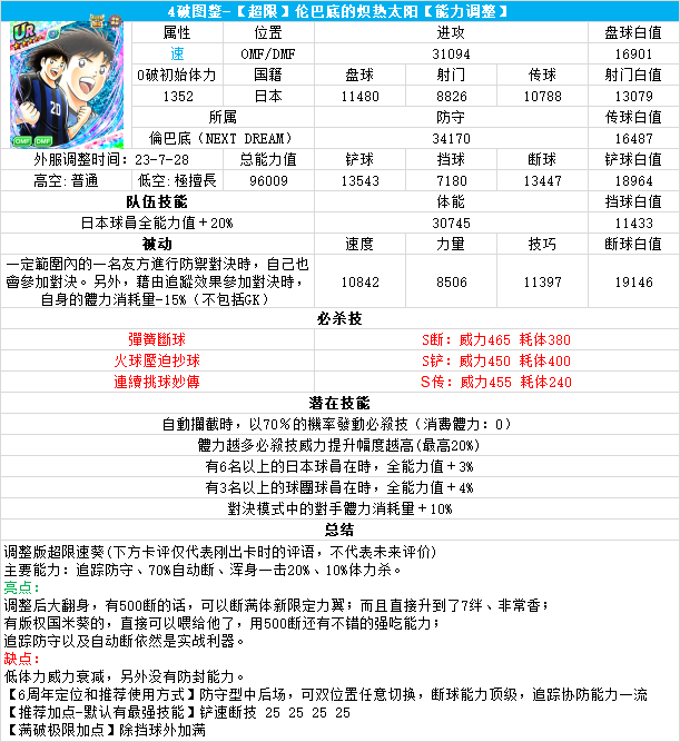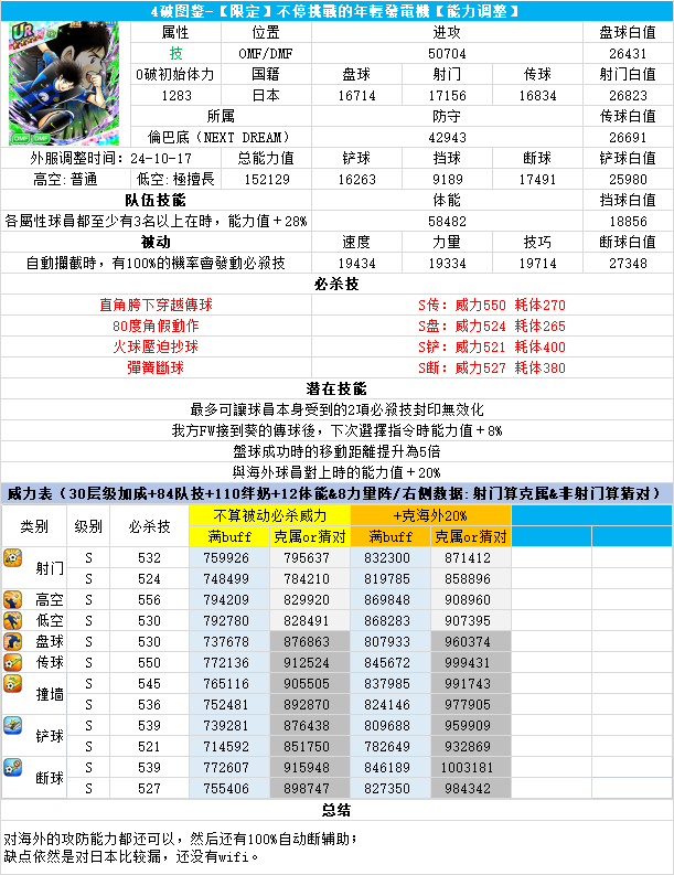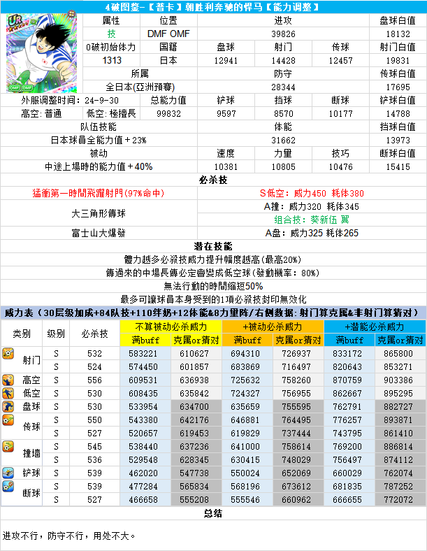 葵新伍葵新伍所有技能卡:葵新伍技能库:(点击链接可跳转im数据网,查看射门命中率等信息)https://tsubasa.im/global/zh/character/skills/?id=20葵新伍传授P点技能库:(点击链接可跳转im数据网,查看射门命中率等信息)https://tsubasa.im/global/zh/character/inherit_cost/?id=20