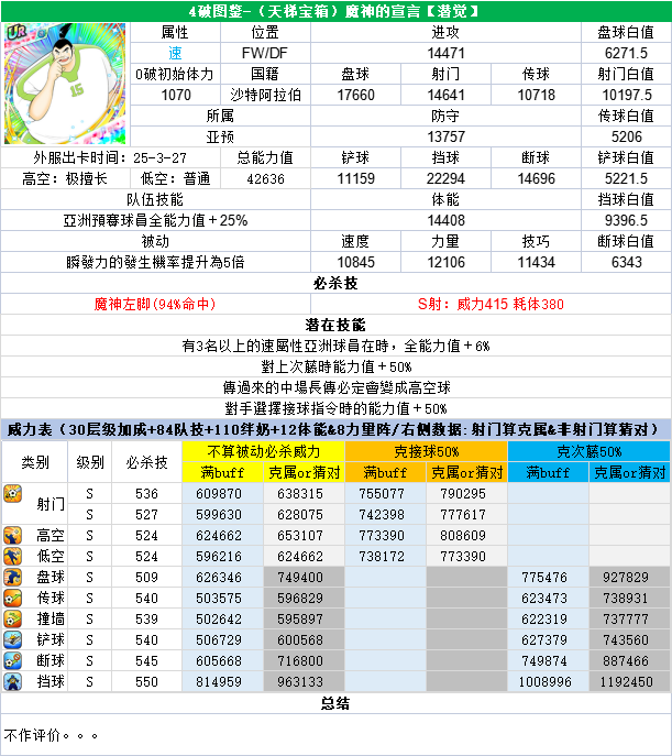伏尔甘魔神所有技能卡:魔神技能库(点击链接可跳转im数据网,查看射门命中率等信息)https://tsubasa.im/global/zh/character/skills/?id=315魔神传授P点技能库(点击链接可跳转im数据网,查看射门命中率等信息)https://tsubasa.im/global/zh/character/inherit_cost/?id=315