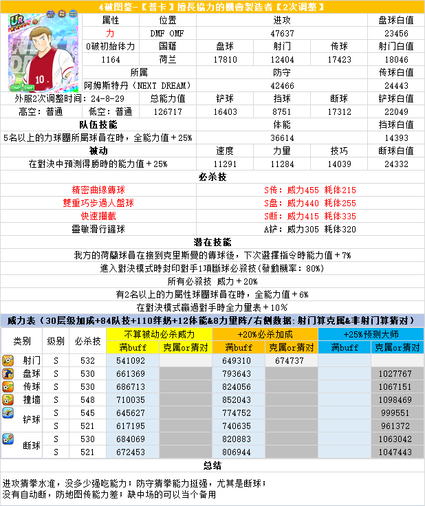 路德·克里斯曼 克里斯曼所有技能卡:克利斯曼必杀技(点击链接可跳转im数据网,查看射门命中率等信息)https://tsubasa.im/global/zh/character/skills/?id=269克利斯曼传授P点必杀技(点击链接可跳转im数据网,查看射门命中率等信息)https://tsubasa.im/global/zh/character/inherit_cost/?id=269