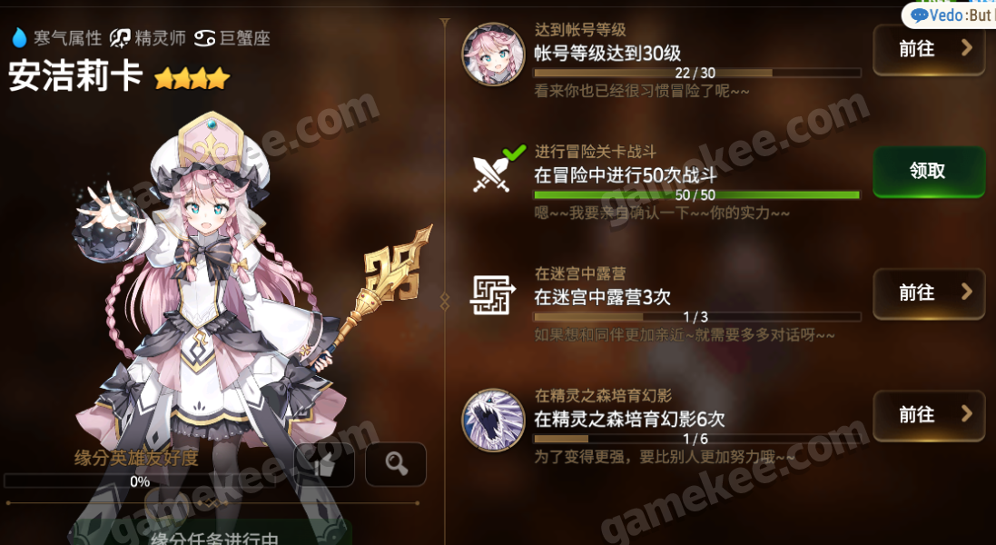 由于这初始号自带安洁莉卡,但是没有开水哥我决定二图解锁他的任务