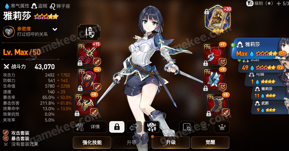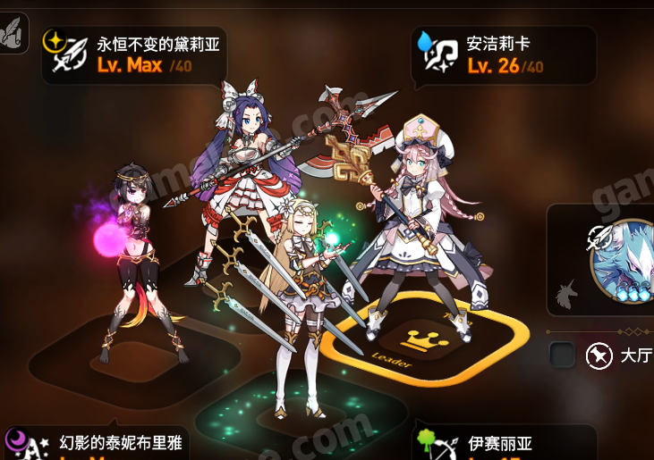 由于是初始号号上自带安洁利卡我就让她当前排了,自建号可以用主角拉斯当前排