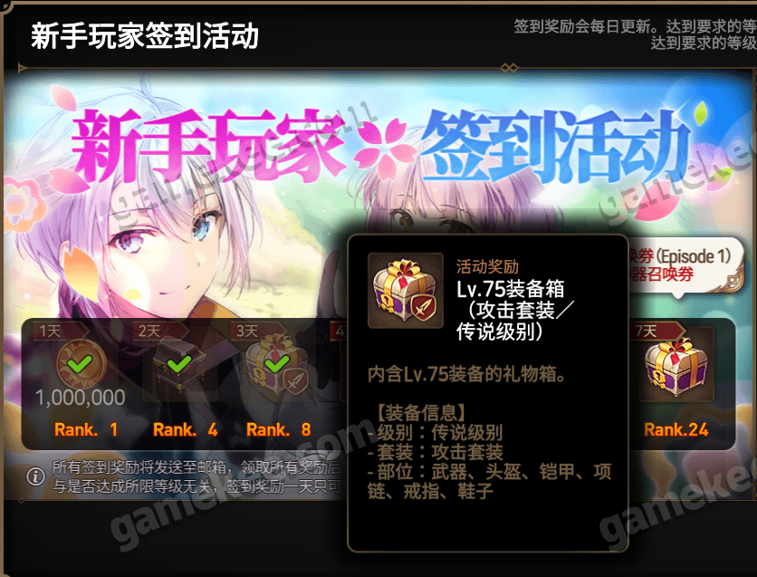 以上装备是新手签到三天送的