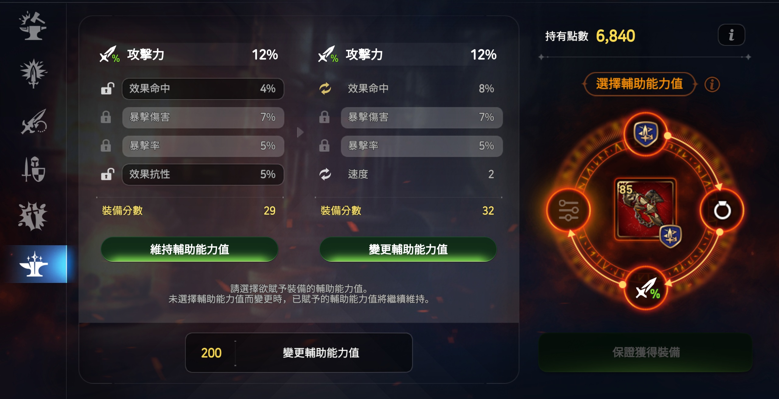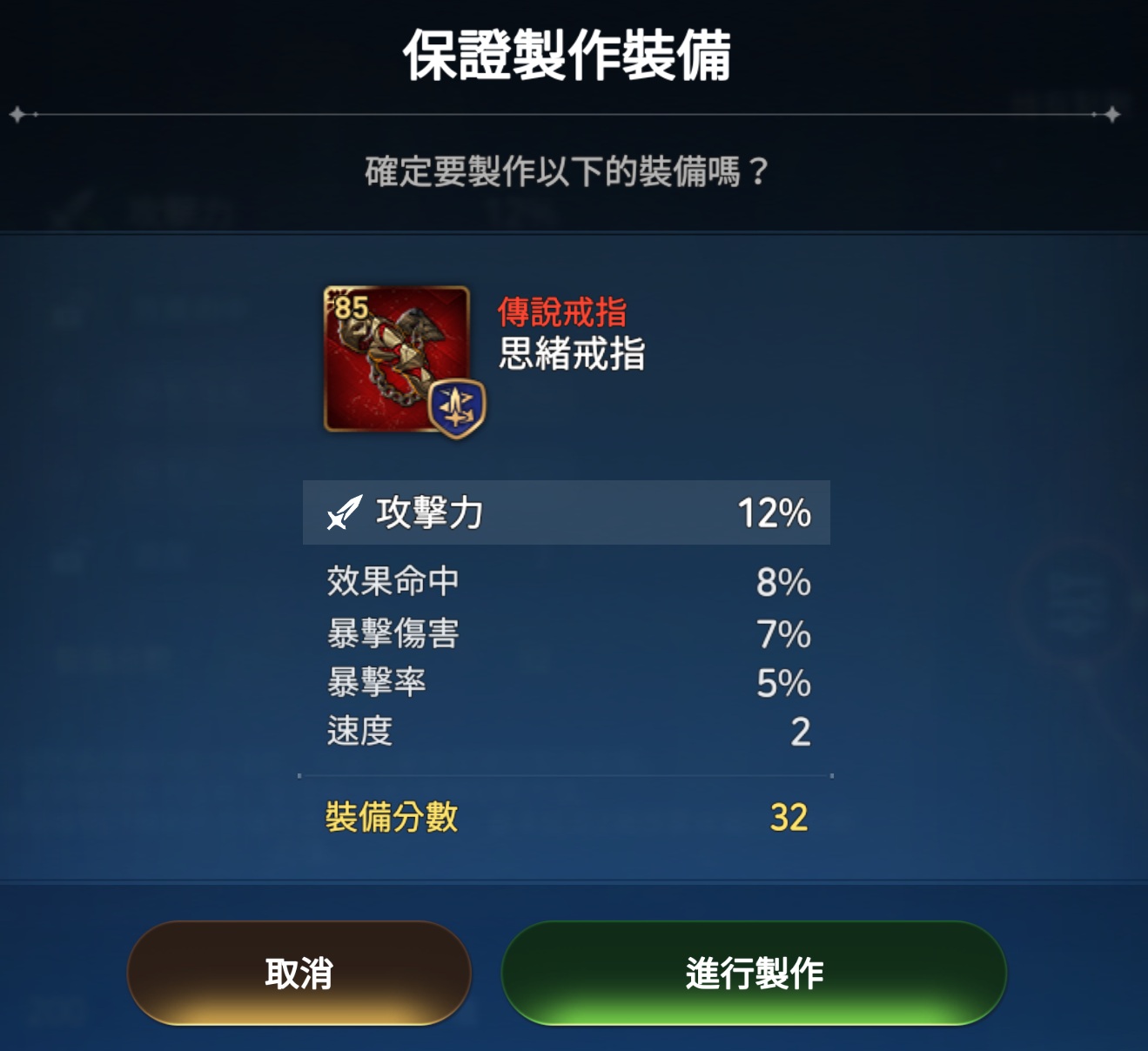 能製作出繼承者想要的裝備套裝及能力值的機會!