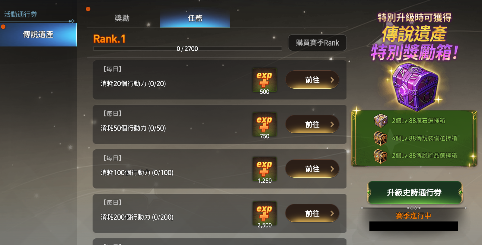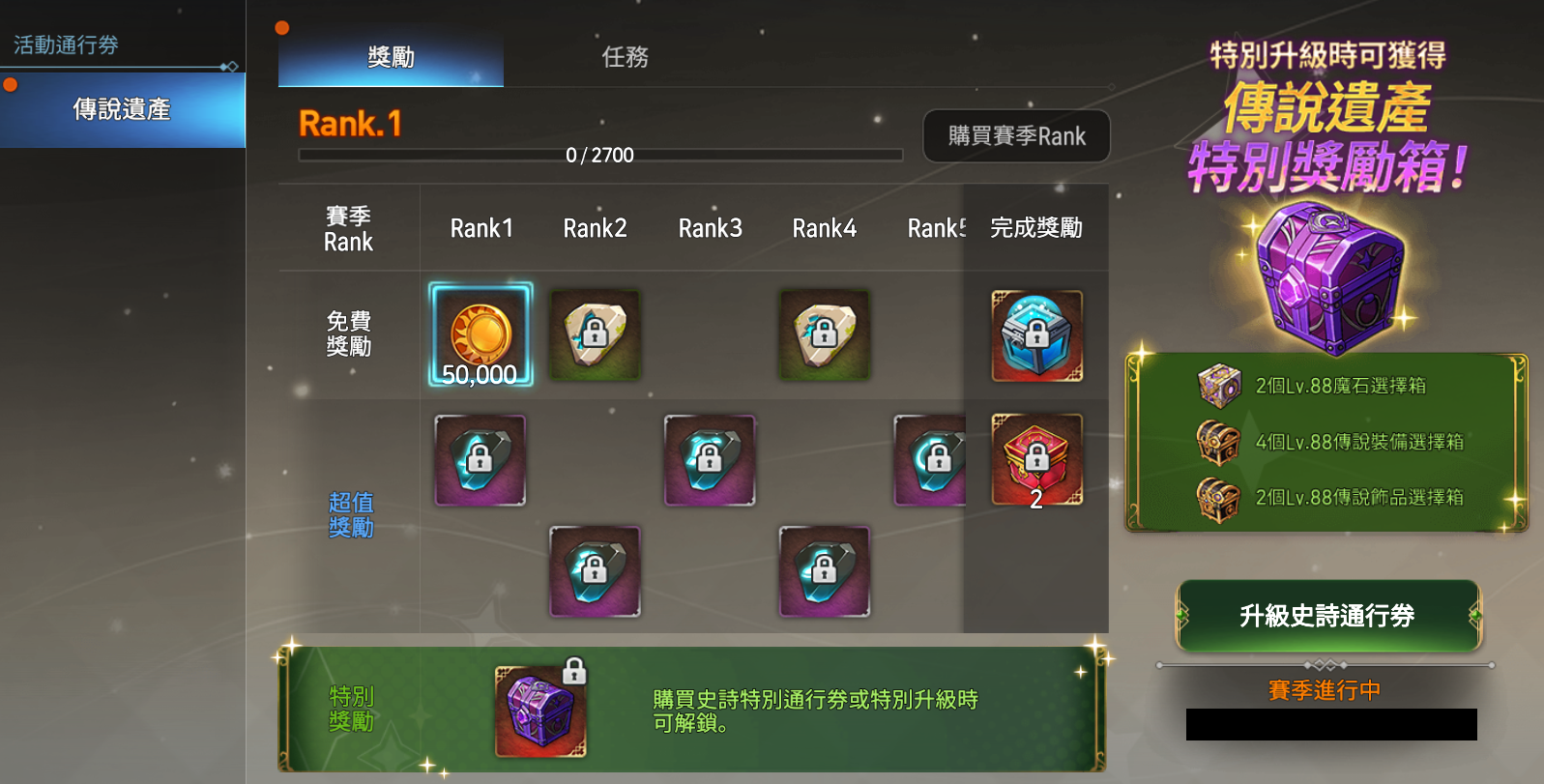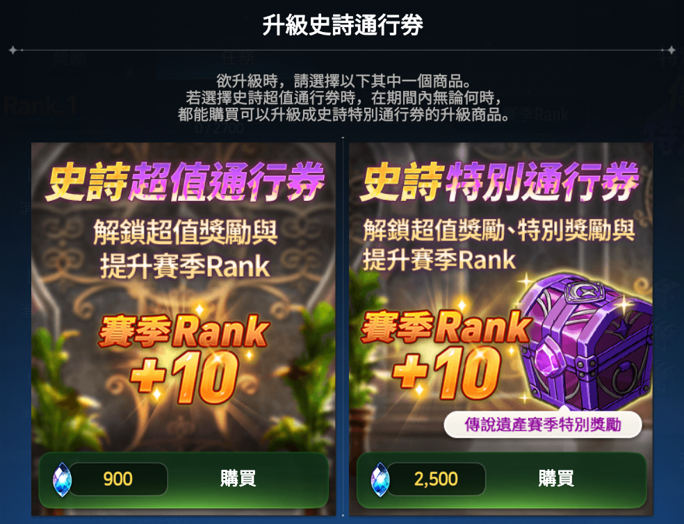 ※ 在領取史詩通行券獎勵期間,也可以購買史詩通行券升級商品,但無法獲得史詩通行券的經驗值。
