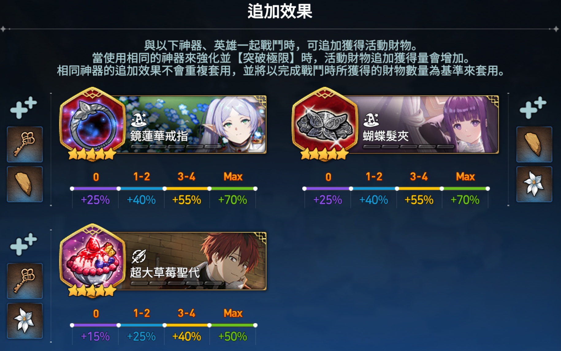 ※ 5★神器「蝴蝶髮夾」從第2週起套用追加效果。