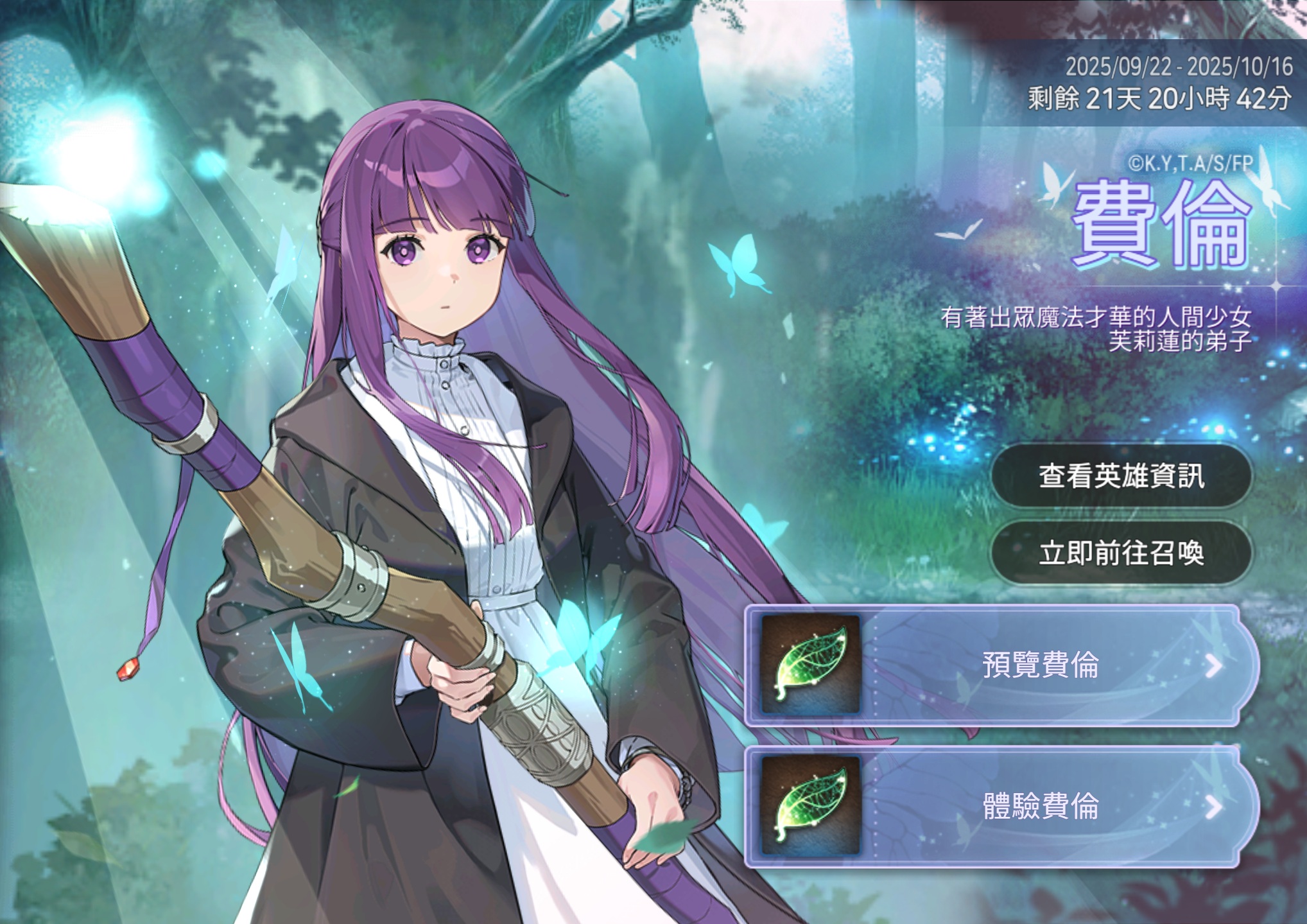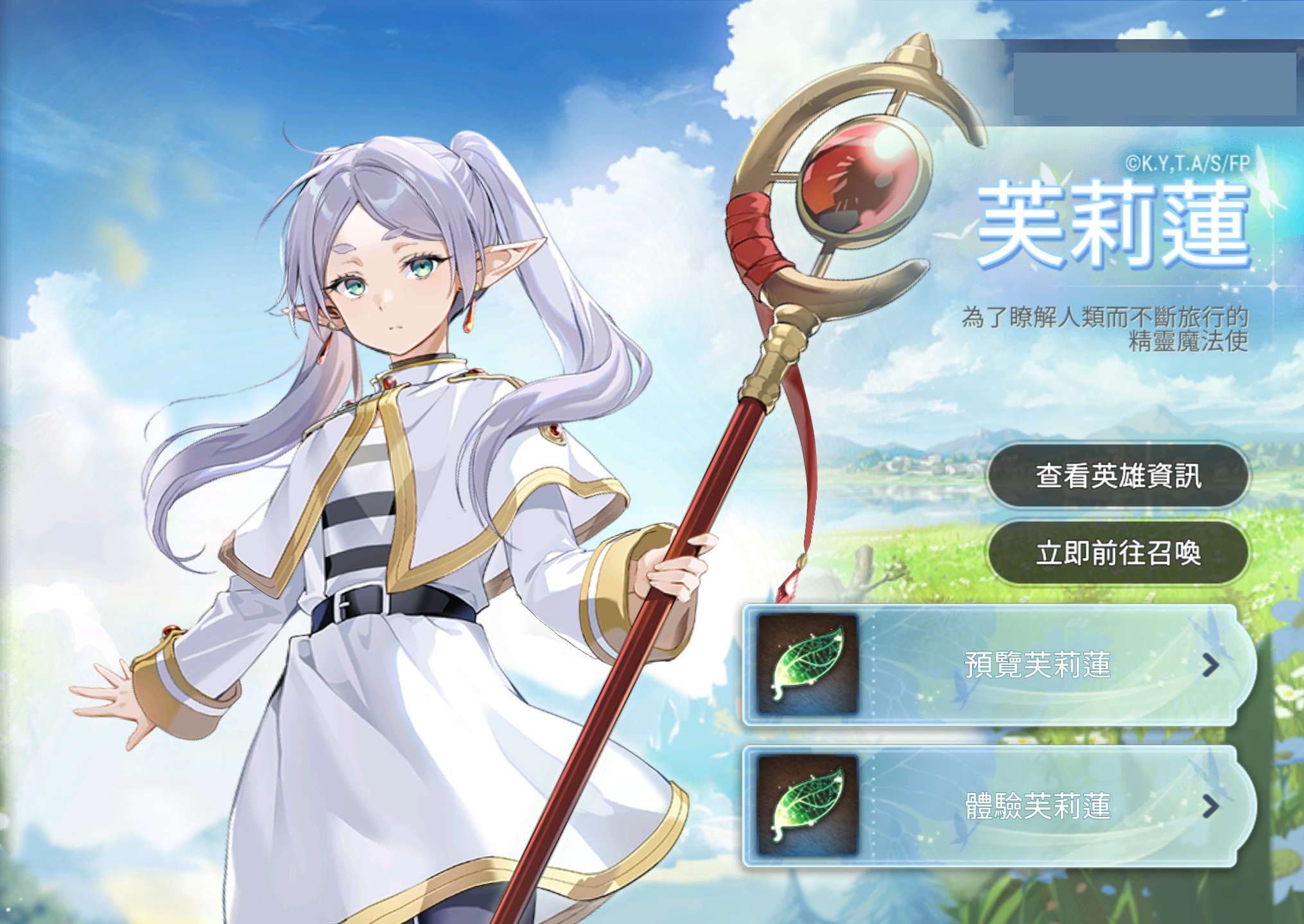 全新5★英雄「芙莉蓮」,將可透過「限定召喚」與她相遇。