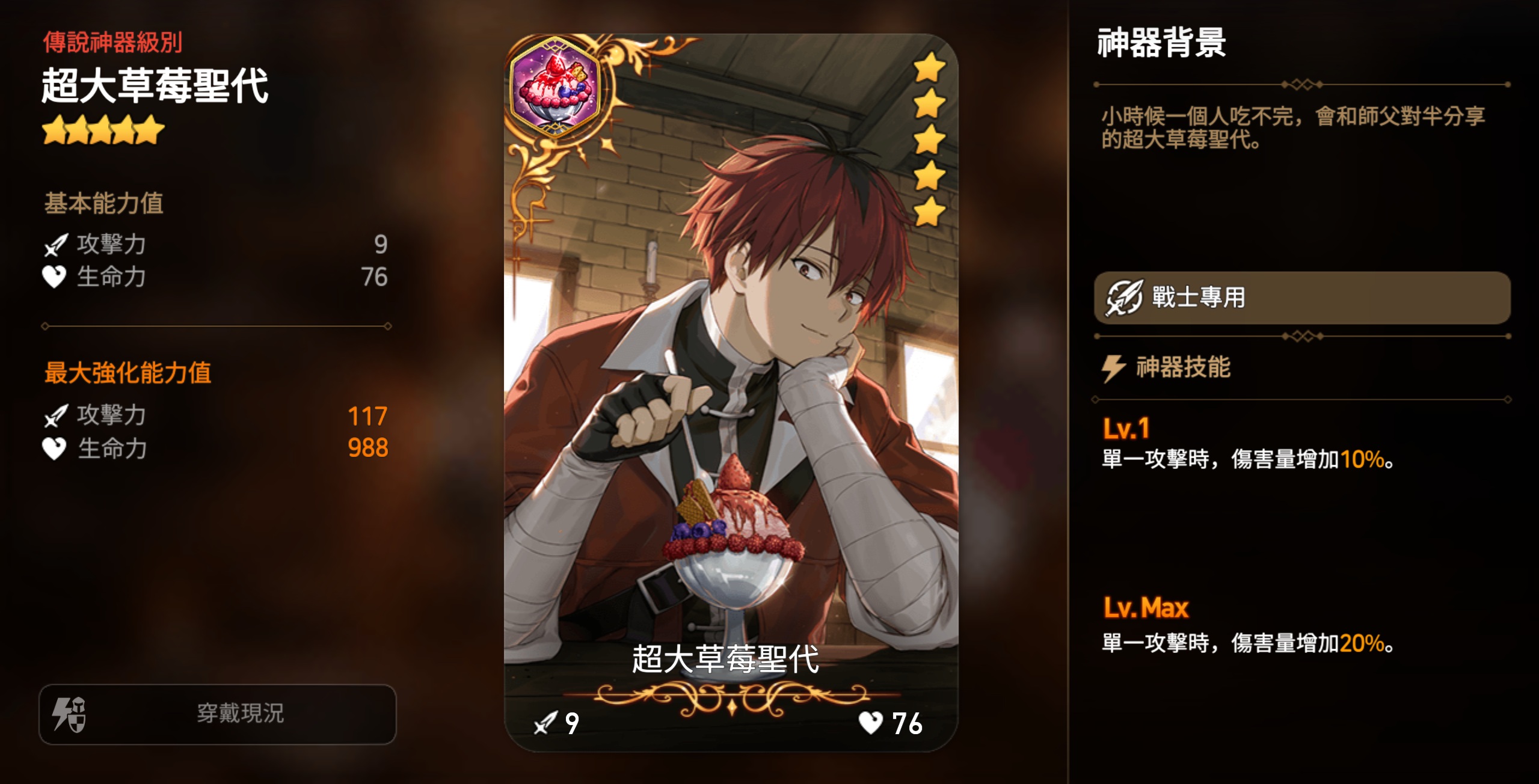 ■ 新增戰士專用5★神器【超大草莓聖代】。