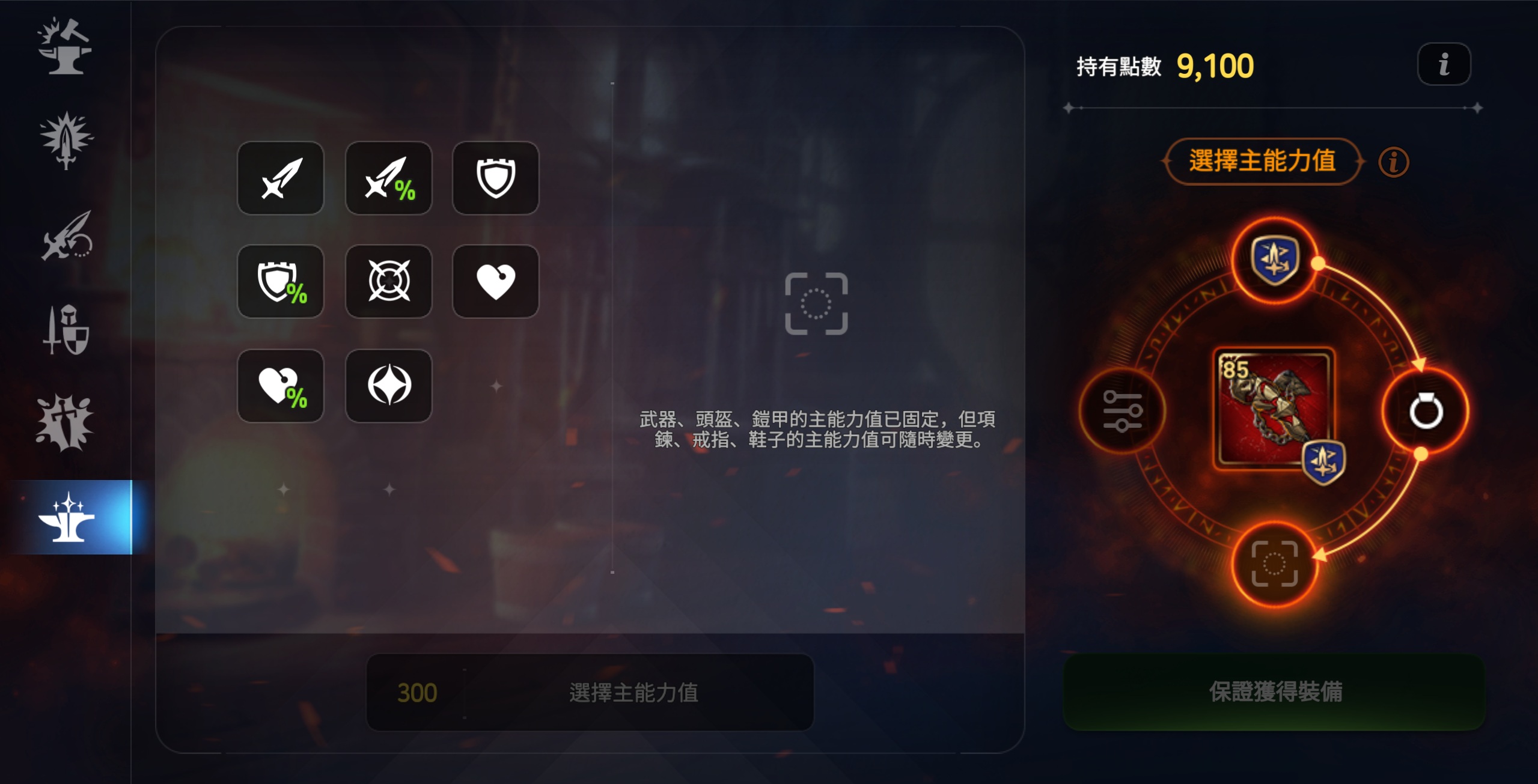※【主要能力值】 - 鞋子、項鍊、戒指的主能力值,會以相同的1/n機率得出結果。
