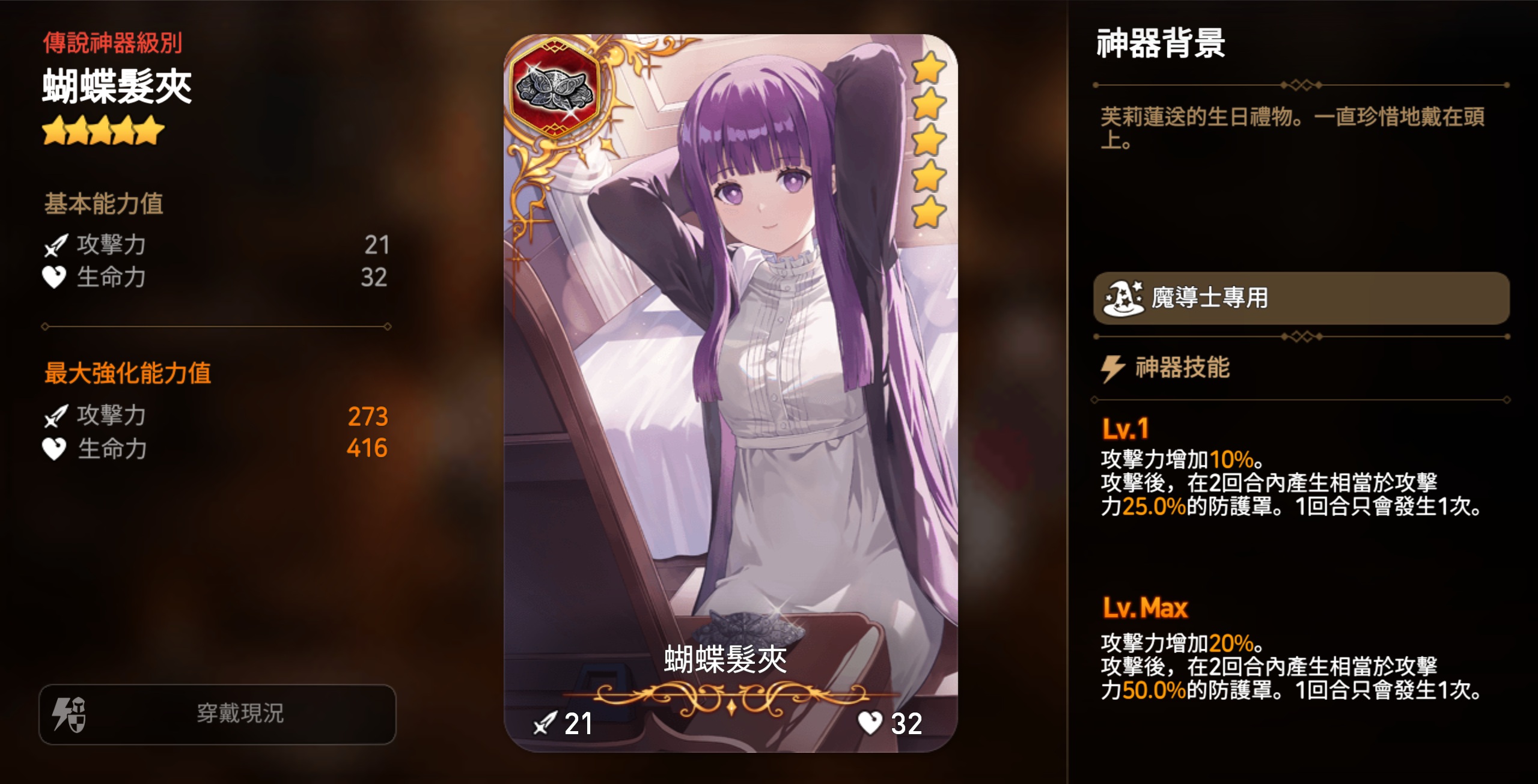 ※ 【蝴蝶髮夾】神器僅能在「費倫&蝴蝶髮夾限定召喚機率UP!」獲得。