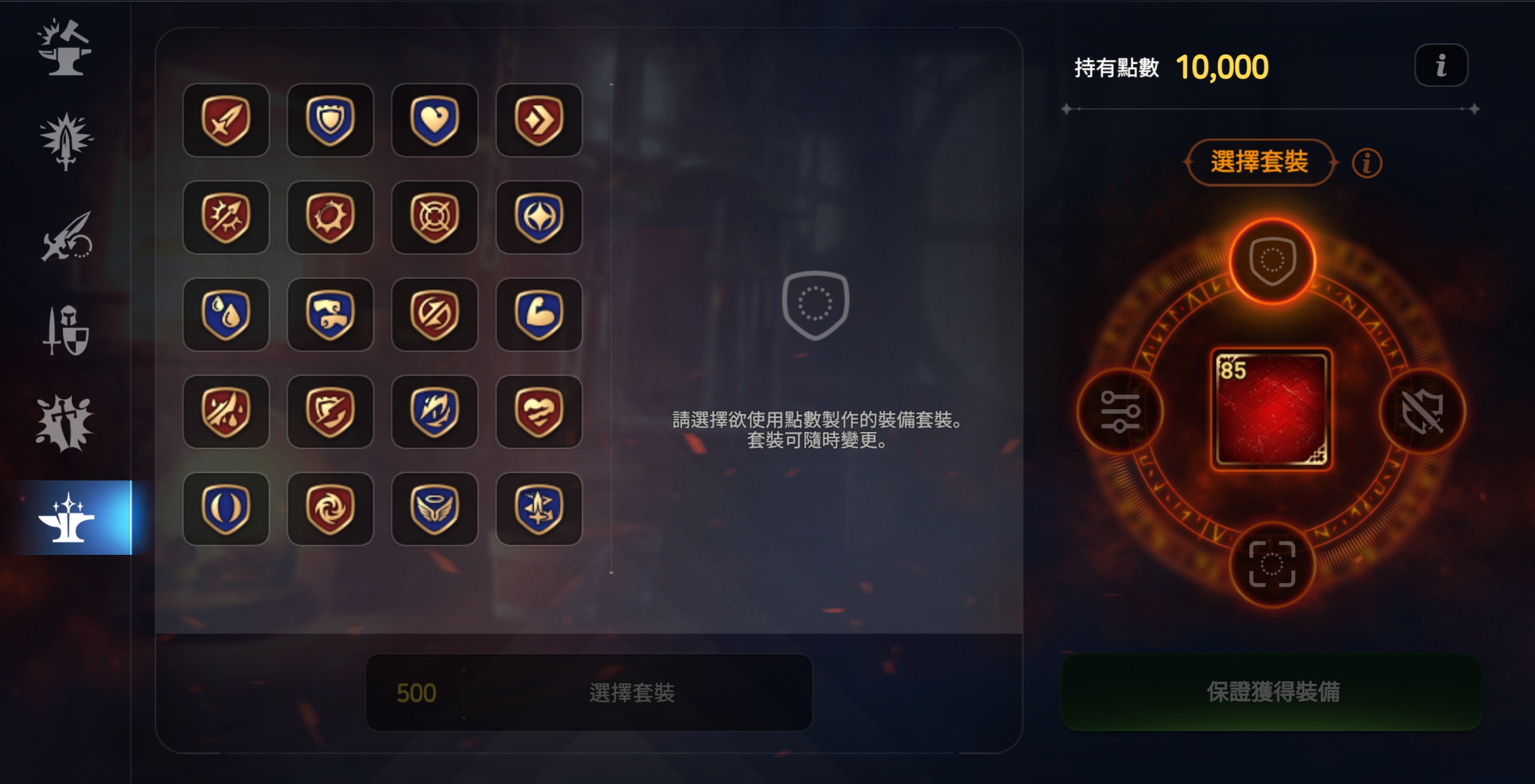 ※ 可以從傳說裝備和飾品選擇箱中選擇想要的套裝和部位。