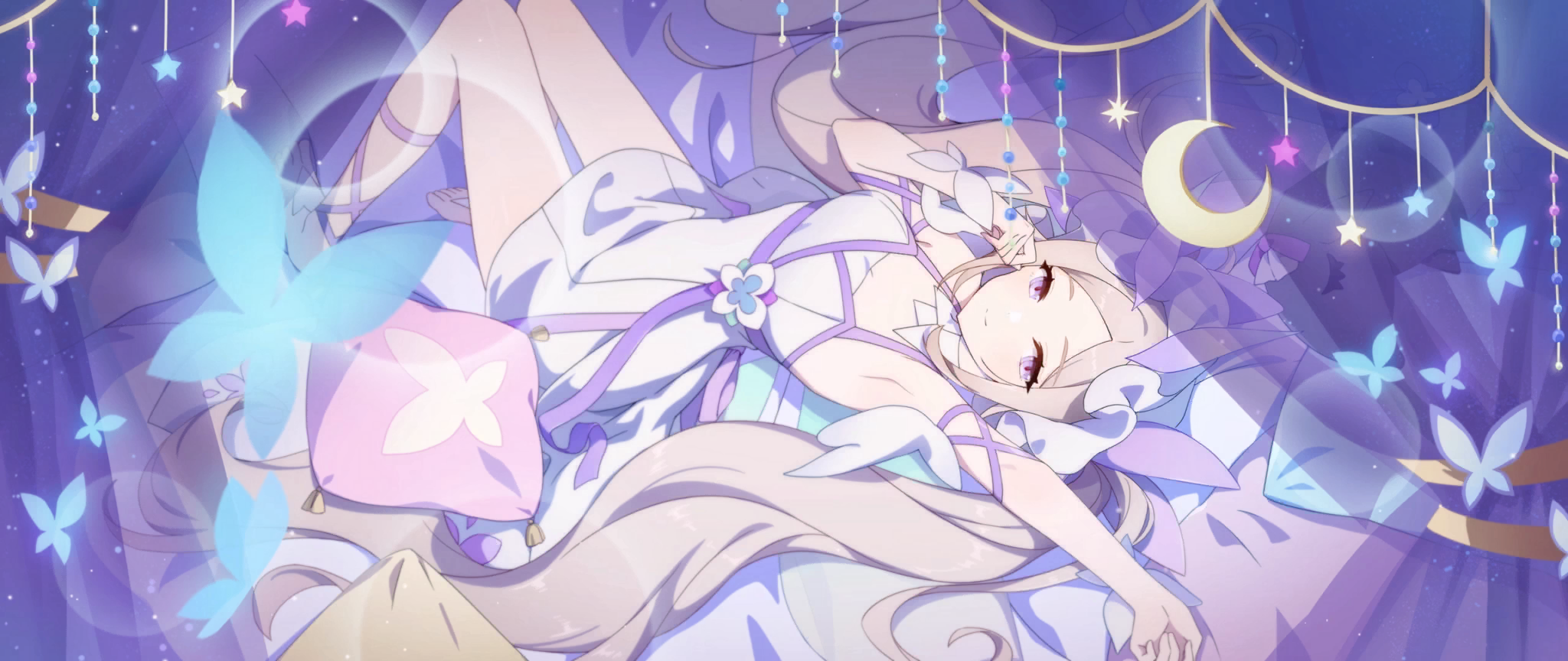 等级1:把敌人关进永恒的梦中。对所有敌人造成攻击力300%的伤害,并使其陷入<睡眠>状态,持续6秒。若敌人已为睡眠状态,则造成攻击力450%的伤害(等级1解锁)