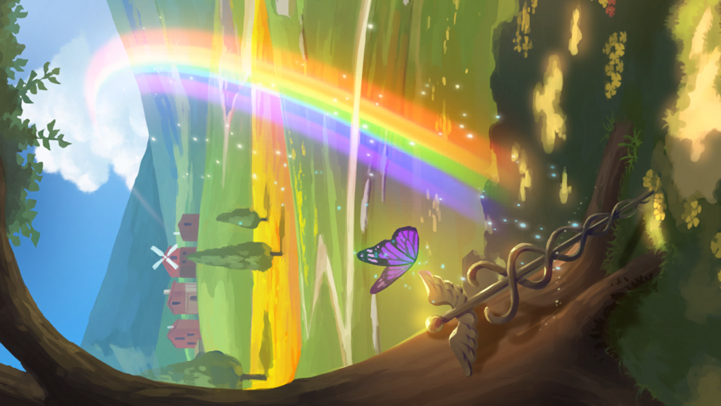 围绕着权杖的两只蛇意味着能穿梭无数界域。连接着天界与地面的彩虹,此时此刻也正引领着世界走向和平。